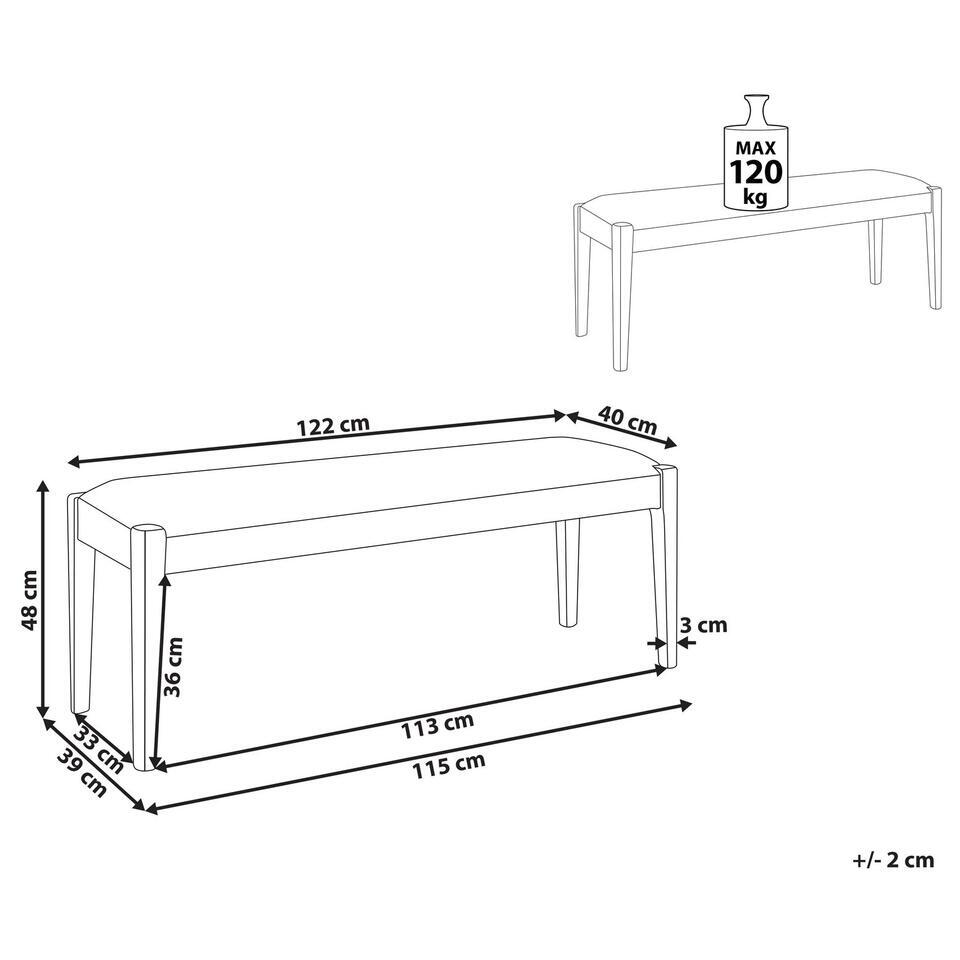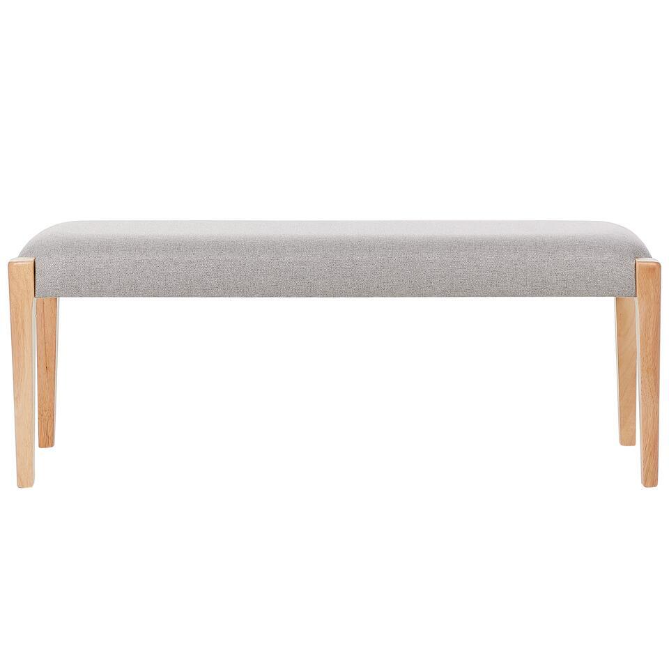 Bank met gestoffeerde zitting voor in de gang. Plaats dit bankje in je huis om elke ruimte stijlvoller en comfortabeler te maken. Het bankje is gemaakt van duurzaam en gemakkelijk te onderhouden materialen, met lichtgrijze, zachte polyester zitting. Daarnaast heeft het bankje stevige rubberhouten poten. Door zijn ontwerp past het stuk in veel verschillende interieur stijlen.