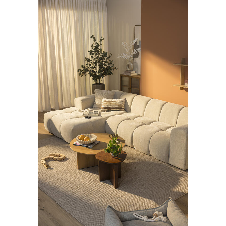 Hoekbank Beau past zowel in een modern als in een Japandi-interieur en geeft elke woonruimte een luxueuze uitstraling. De zachte beige kleur laat zich goed combineren met zowel neutrale tinten als uitgesproken interieurs.