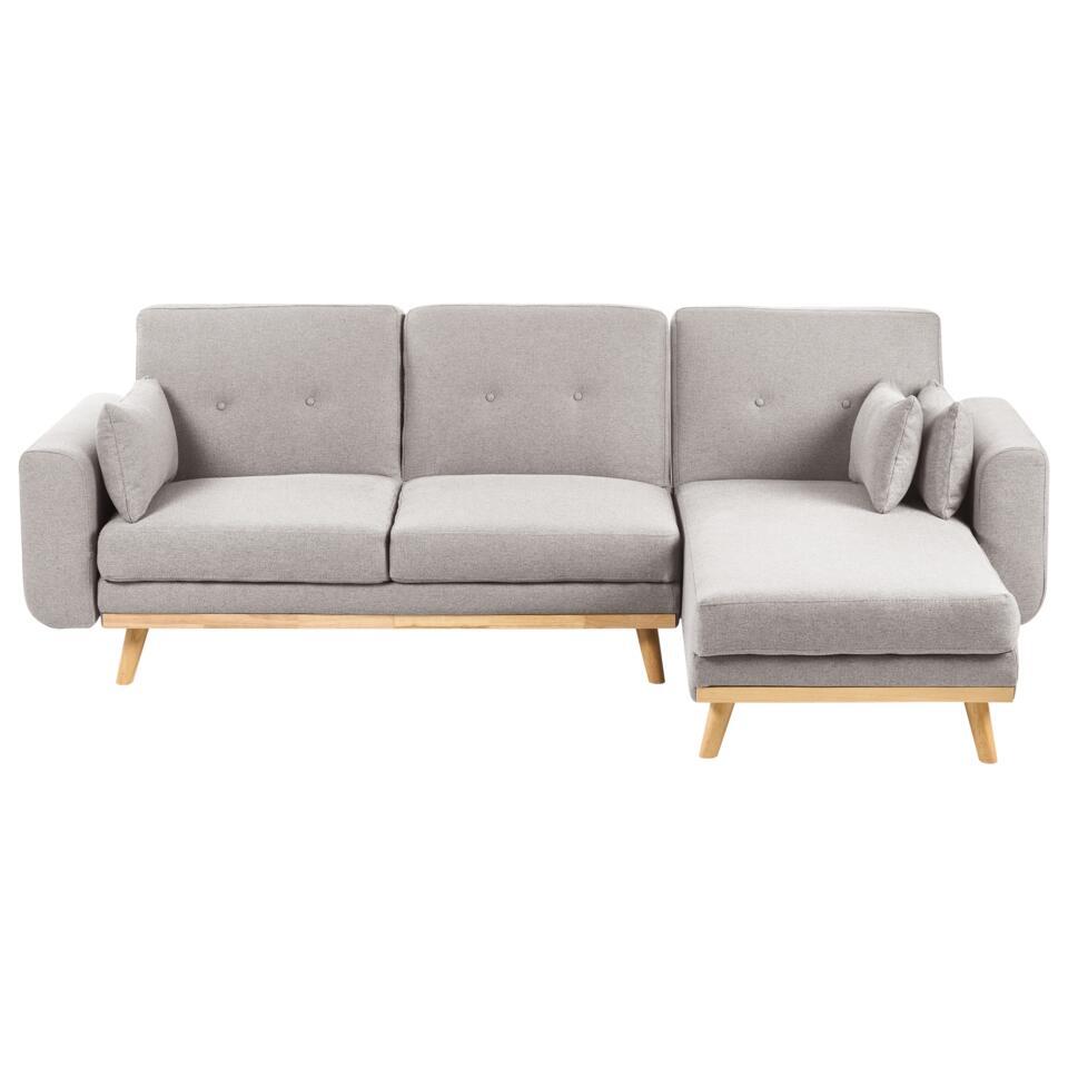Gestoffeerde L-vormige bank met sierkussens. Deze hoekbank is ontworpen voor zowel stijl als comfort en heeft een ruime zithoek, waardoor hij perfect is om tot rust te komen of gasten te ontvangen. De stoffen bekleding is zowel zacht als duurzaam en de rubberhouten poten voegen een vleugje warmte toe aan het moderne ontwerp. Bovendien heeft de bank een slaapfunctie, waardoor je hem gemakkelijk kunt omtoveren tot een comfortabel bed. Een veelzijdig stuk dat moeiteloos past in hedendaagse huizen.
