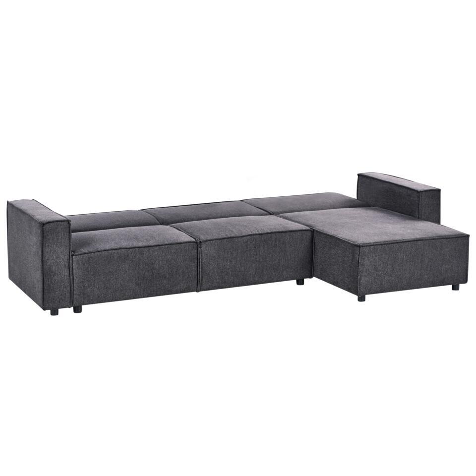 Modulaire driezitsbank. Creëer een warme en uitnodigende gespreksruimte met deze eenvoudig vormgegeven klassieke bank. Dankzij de volledig gestoffeerde rugleuning en het veelzijdige ontwerp, waarbij de chaise zowel links als rechts geplaatst kan worden, kun je je woonkamer op veel verschillende manieren inrichten om een gezellige plek te creëren waar je overdag kunt uitrusten. Met een eenvoudig en snel te gebruiken klik-klak mechanisme kun je deze bank ombouwen tot een comfortabel bed voor twee personen en je vrienden welkom heten om te blijven slapen. Kunststof poten zorgen ervoor dat de bank stabiel staat.