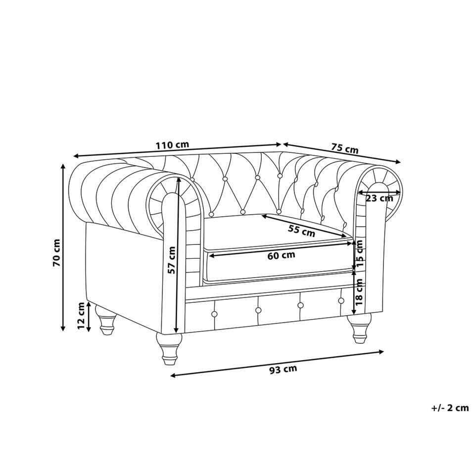 Belangrijkste eigenschappen: Dik gevoerd voor het uiterste comfort, Stijlvolle Chesterfield-look, Voegt een huiselijke sfeer toe in elke ruimte, Versiert met knoopdetails, Hoogwaardig materiaal, Rondom bekleed en dus vrij op te stellen