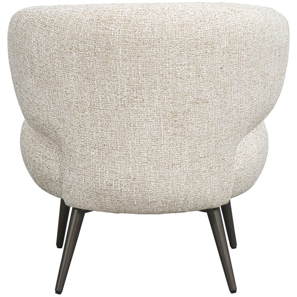 De ronde vormen en knusse uitstraling maken deze fauteuil tot een echte sfeermaker. De natuurlijke beige kleur voegt warmte toe aan je interieur en laat zich moeiteloos combineren met neutrale of aardse tinten.