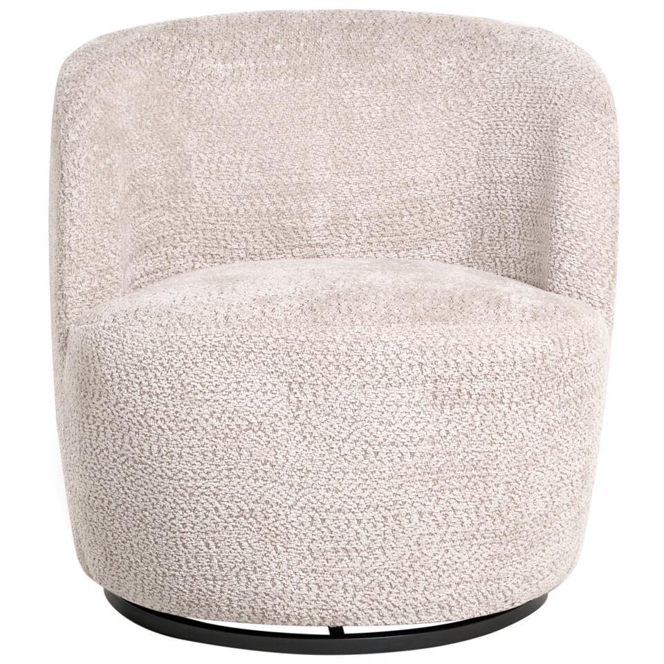 Gestoffeerde fauteuil met draaivoet. Voeg een vleugje elegantie toe aan je ruimte met deze comfortabele fauteuil, bekleed met zachte chenille stof. Dankzij het draaibare onderstel is hij gemakkelijk te verplaatsen, waardoor hij perfect is voor verschillende omgevingen, van de woonkamer tot het thuiskantoor. De chique afwerking en het compacte ontwerp maken hem tot een veelzijdige aanvulling op elke ruimte.