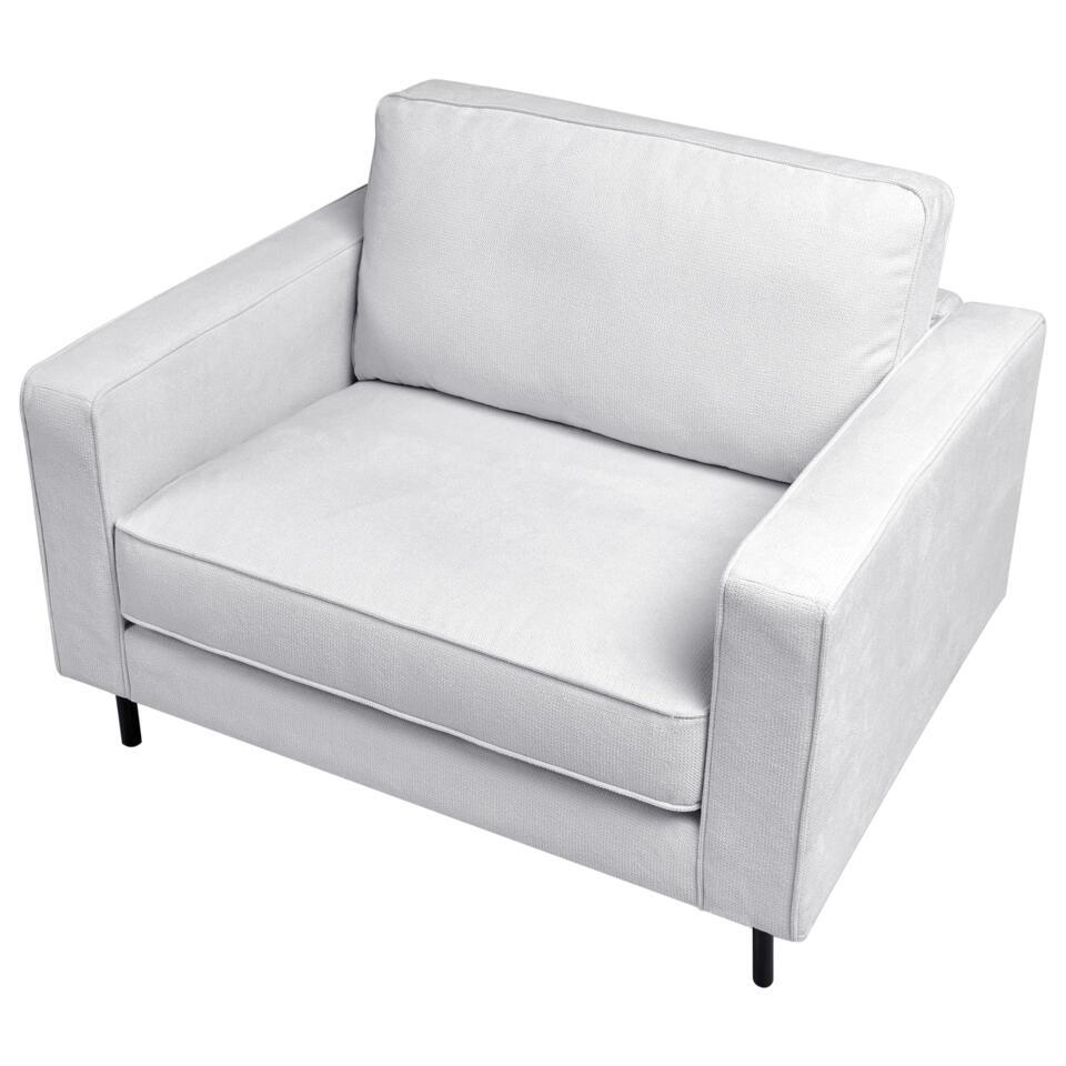 Minimalistische fauteuil. Deze fauteuil is een ideaal middelpunt in elke woonruimte en geeft het interieur een extra dimensie met zijn tijdloze ontwerp. Het strakke silhouet op metalen poten, bekleed met zachte stof, heeft een elegante, minimalistische uitstraling. De bekleding is zacht en de kussens zijn royaal gevuld voor optimaal zitcomfort. Perfect om een luxe uitstraling toe te voegen aan zowel een traditioneel als een modern interieur.
