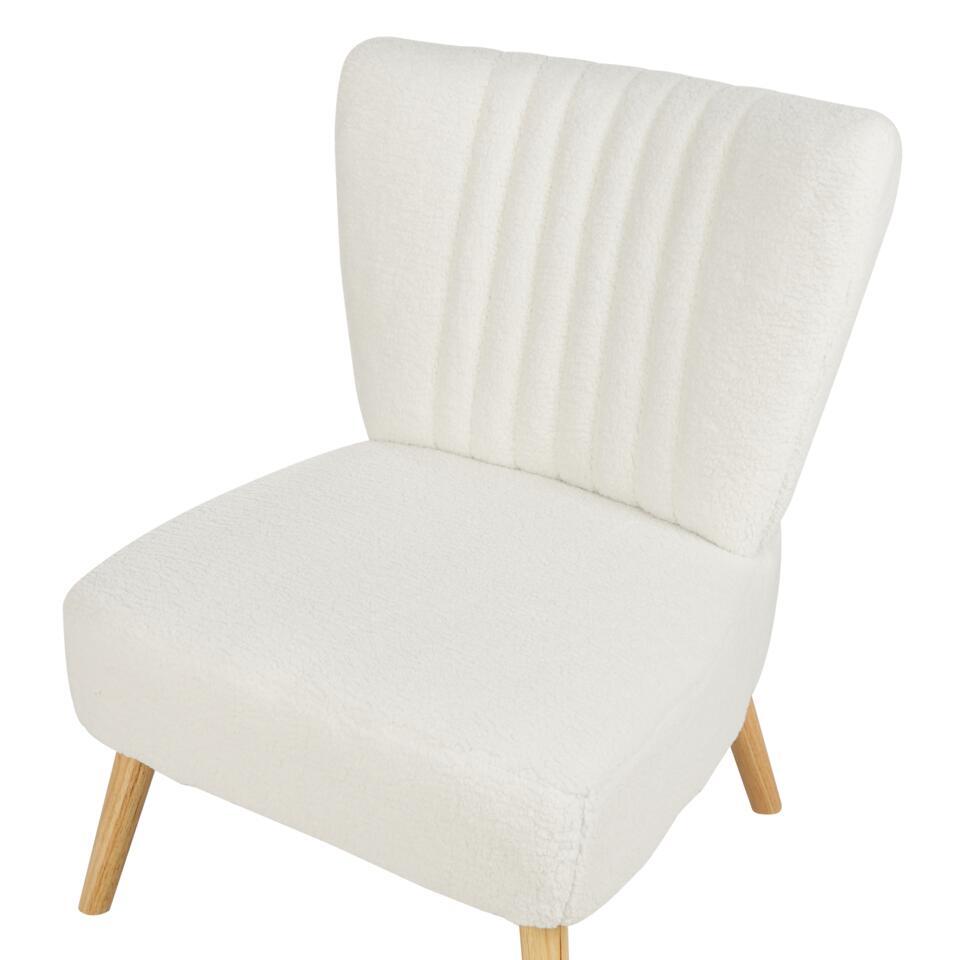 Fauteuil zonder armsteunen. De functionele vorm en het eenvoudige silhouet van deze fauteuil komen goed van pas in een master suite, woonkamer of hal. Het open, armloze ontwerp met korte poten is een perfecte aanvulling op elk modern, minimalistisch interieur als bijzetstoel of accentstuk. De hoogwaardige bekleding in een chique witte tint is verticaal getuft en de hele stoel wordt geaccentueerd door 4 taps toelopende poten.