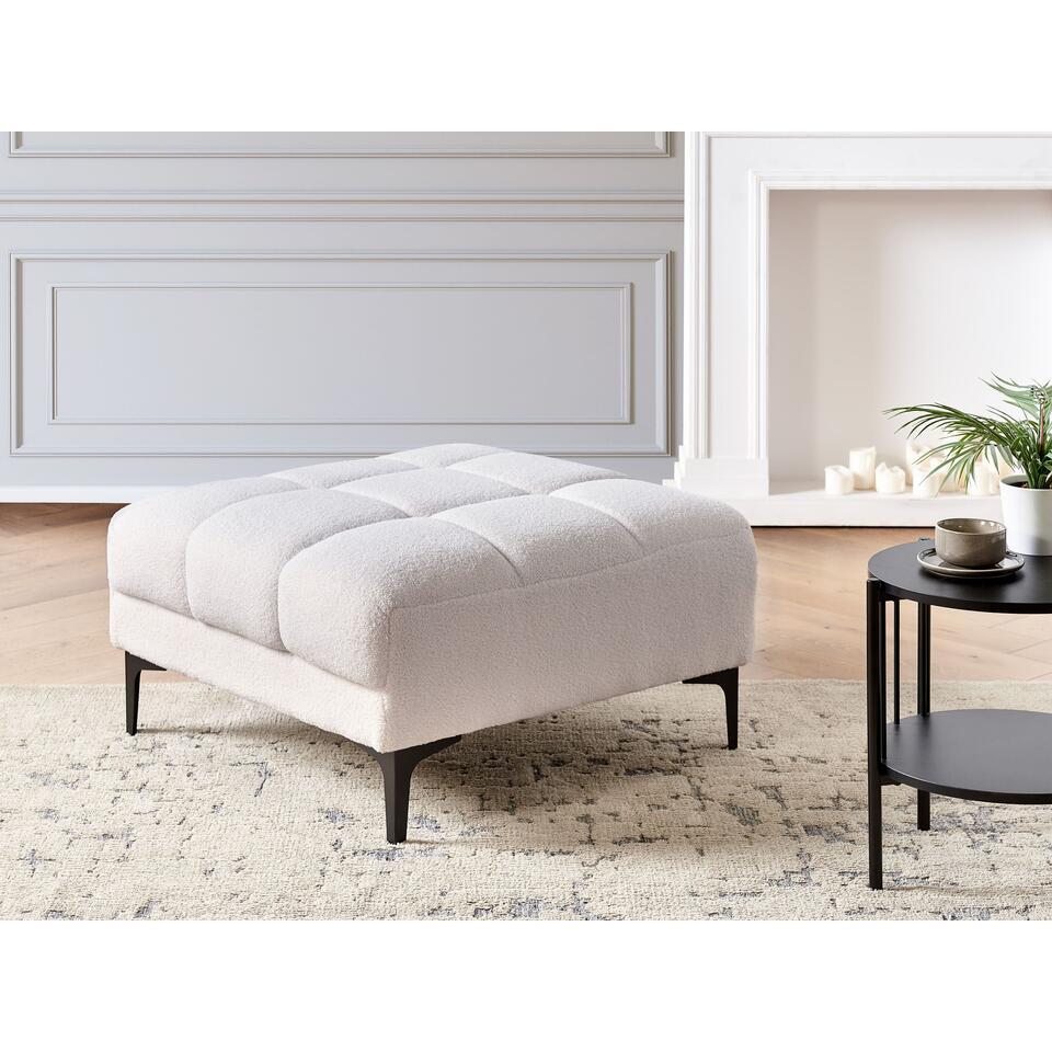 Voetenbank met getufte stof. Trakteer jezelf op de perfecte aanvulling voor je woonkamer met deze elegante voetenbank. Hij is bekleed met stof van hoge kwaliteit en biedt een comfortabele plek om te zitten of je voeten te laten rusten. Met zijn getufte details en een mooie witte afwerking brengt hij een gezellige en toch stijlvolle charme in je interieur. Ontdek de andere stukken in de collectie om je ultieme relaxplek te creëren.