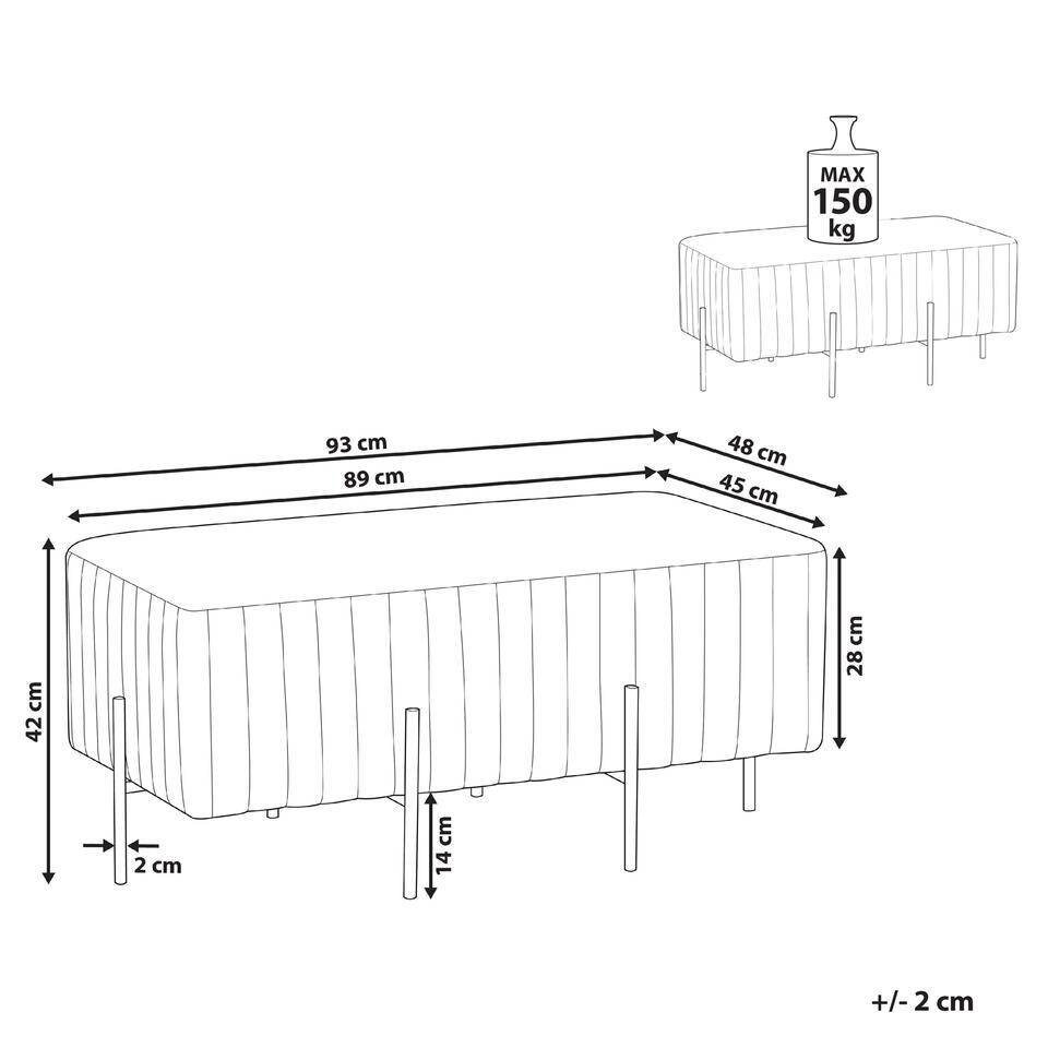 Voetenbankje met metalen poten. Dit gestoffeerde bankje is een chic stijlstatement dat een luxe factor toevoegt aan elk interieur. De rijke textuur van fluweel wordt prachtig geaccentueerd door verticale tufting, waardoor het stuk een glamoureuze uitstraling krijgt. Met zijn veelzijdige, rechthoekige vorm kan hij gebruikt worden in een gang, woonkamer of aan het voeteneind van een bed. De bank ziet er fantastisch uit als een enkel accentstuk en zou een passende aanvulling zijn op glamoureuze en eclectische interieurs.