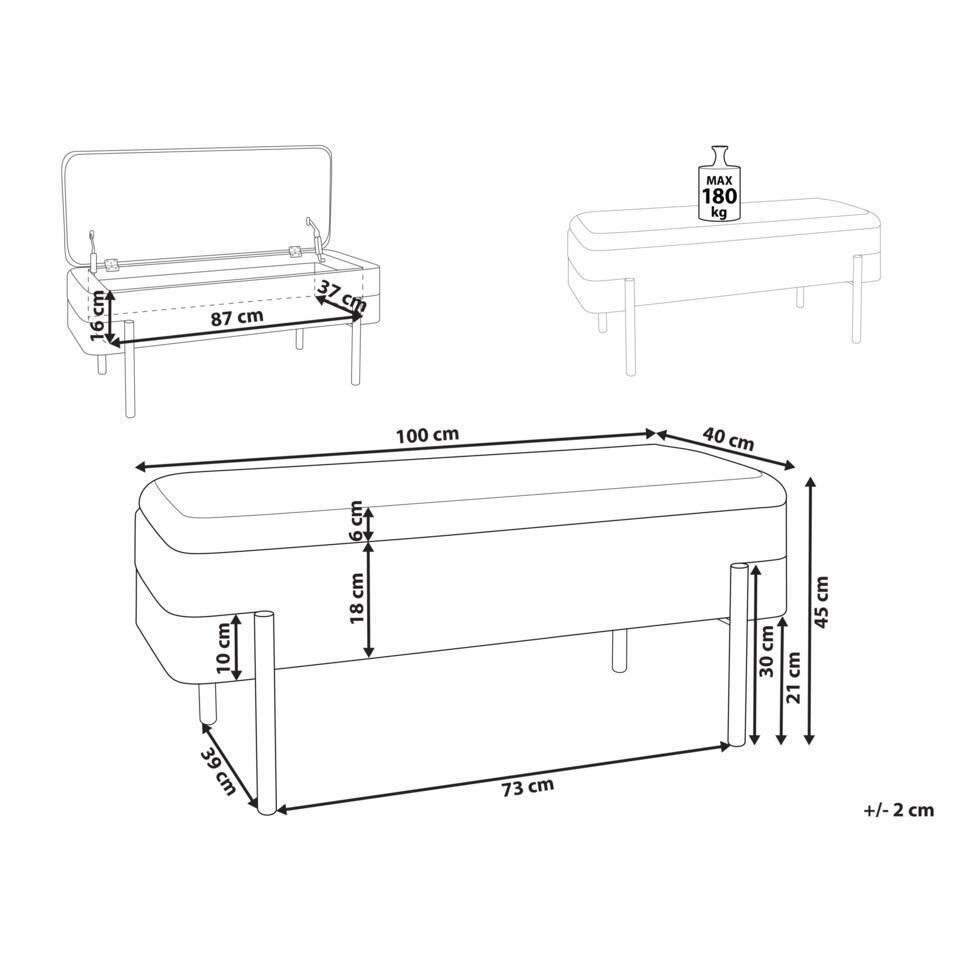 Gestoffeerd bankje met opbergruimte. Voeg een vleugje stijl en functionaliteit toe aan elke kamer met deze stijlvolle gestoffeerde bank. De duurzame stof en stevige metalen poten maken het de perfecte mix van praktisch nut en elegantie, terwijl de ruime opbergruimte onder het deksel helpt om je kamer netjes en opgeruimd te houden. Het tijdloze ontwerp past in veel interieurstijlen.
