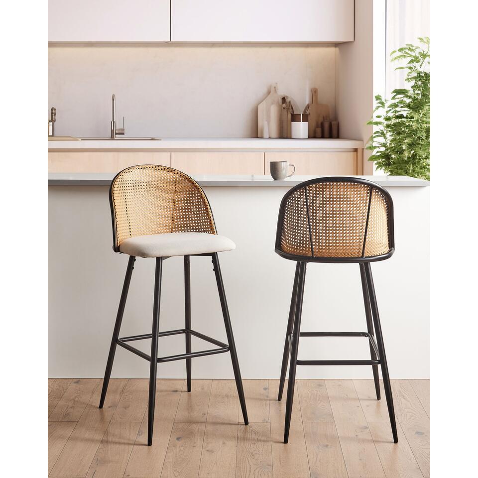 CORNELL - Barkruk set van 2 - Zwart/Crème - IJzer