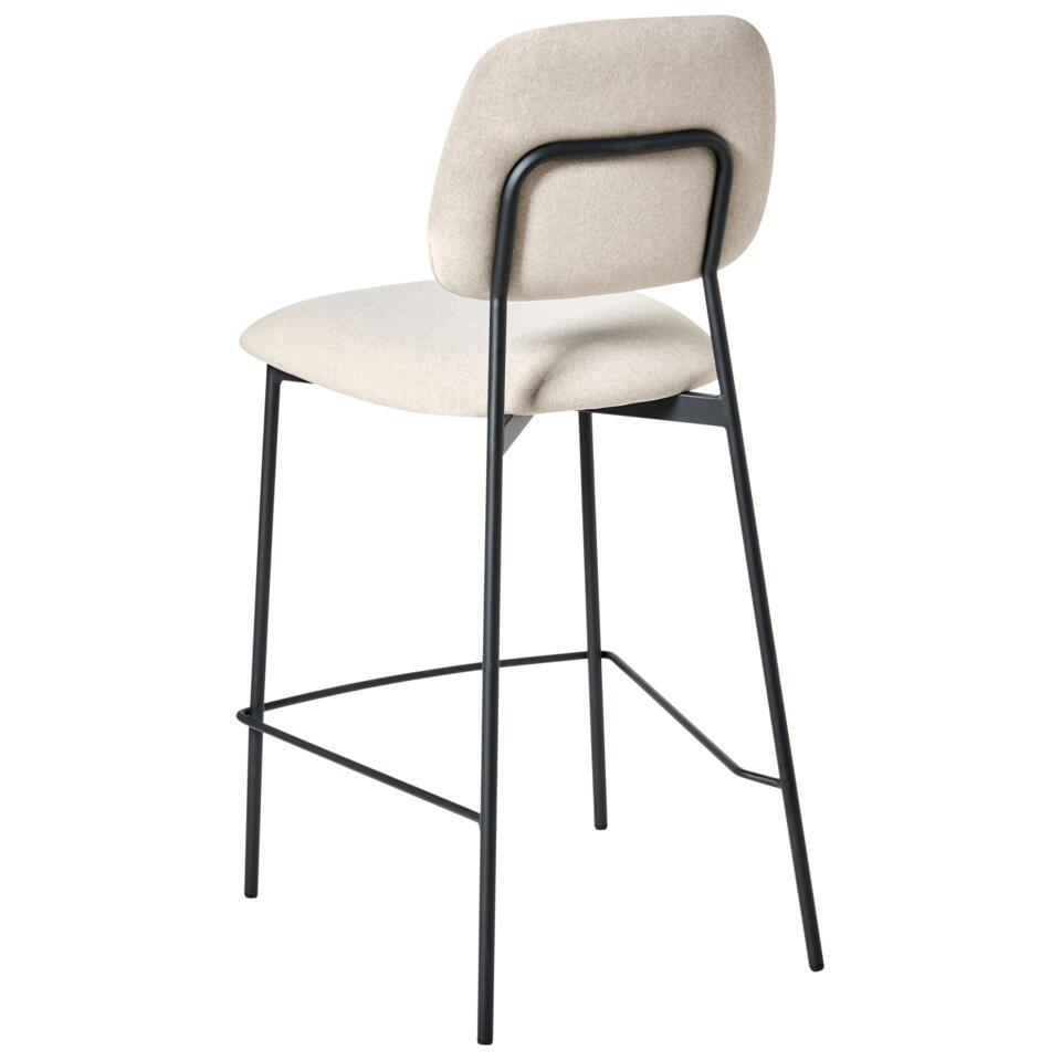 Gestoffeerde barstoelen. Geef je interieur een frisse, moderne uitstraling met deze elegante barkruk. Met zijn zachte lichtbeige, fluwelen bekleding en stevige zwarte poten brengt hij zowel comfort als moderne flair in huis. Perfect om een chique zitplaats toe te voegen aan je ontbijtbar of kookeiland.