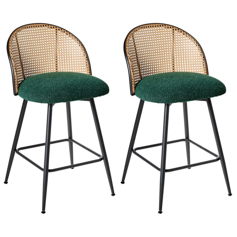 NATHAN - Barkruk set van 2 - Groen - 91 cm - Bouclé