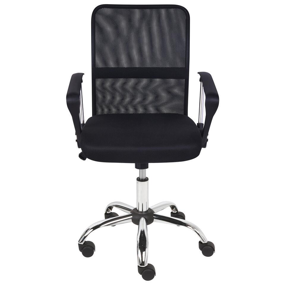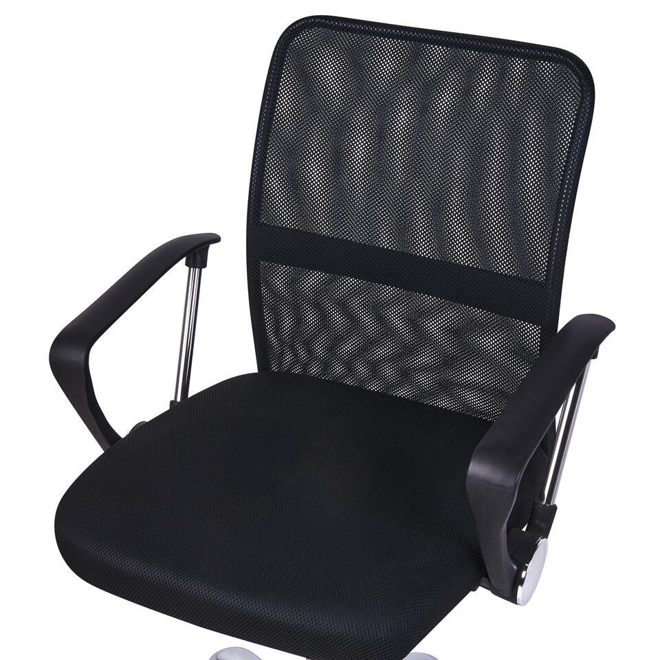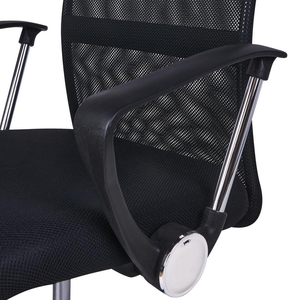 Verstelbare bureaustoel. Deze moderne bureaustoel verhoogt je comfort tijdens het werken of studeren. De rugleuning, gebogen in een natuurlijke boog, zorgt voor een goede zithouding. De hoogteverstelling zorgt ervoor dat de stoel aan elke tafel of bureau past. De mesh bekleding, die luchtcirculatie biedt, harmonieert mooi met de zilveren kleur van het metalen frame, voorzien van soepel rollende wielen.