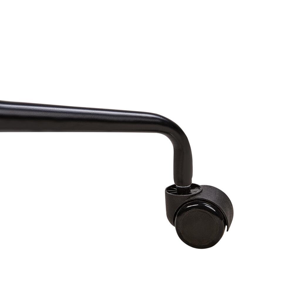 Verstelbare draaibare bureaustoel. Fris je kantoorruimte op met deze functionele bureaustoel. Het beschikt over een 360° draaimechanisme en een gasveer waarmee je de hoogte kunt aanpassen aan je voorkeuren. De stoel is bekleed met duurzaam kunstleer en heeft een gecapitonneerde rugleuning en gewatteerde armleuningen en zitting voor een eenvoudige maar elegante afwerking. Verchroomde metalen poten en basis maken het stuk stabiel en duurzaam. De stoel past goed in traditionele en moderne interieurs.