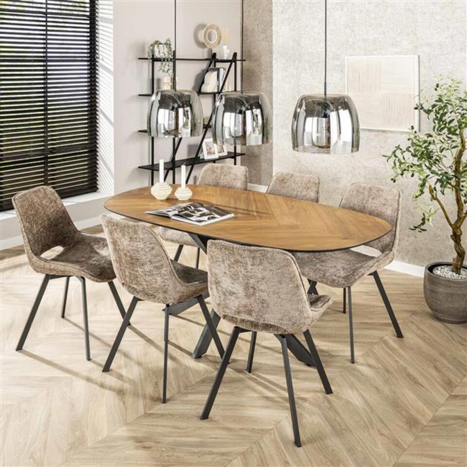 De Swivel eetkamerstoel combineert comfort, functionaliteit en stijl. De zitting is bekleed met een grof geweven chenille stof in een zachte beige kleur, wat zorgt voor een warme en moderne uitstraling. Het onderstel is uitgevoerd in gepoedercoat staal in de kleur antraciet, wat een stoer contrast geeft en garant staat voor stabiliteit.