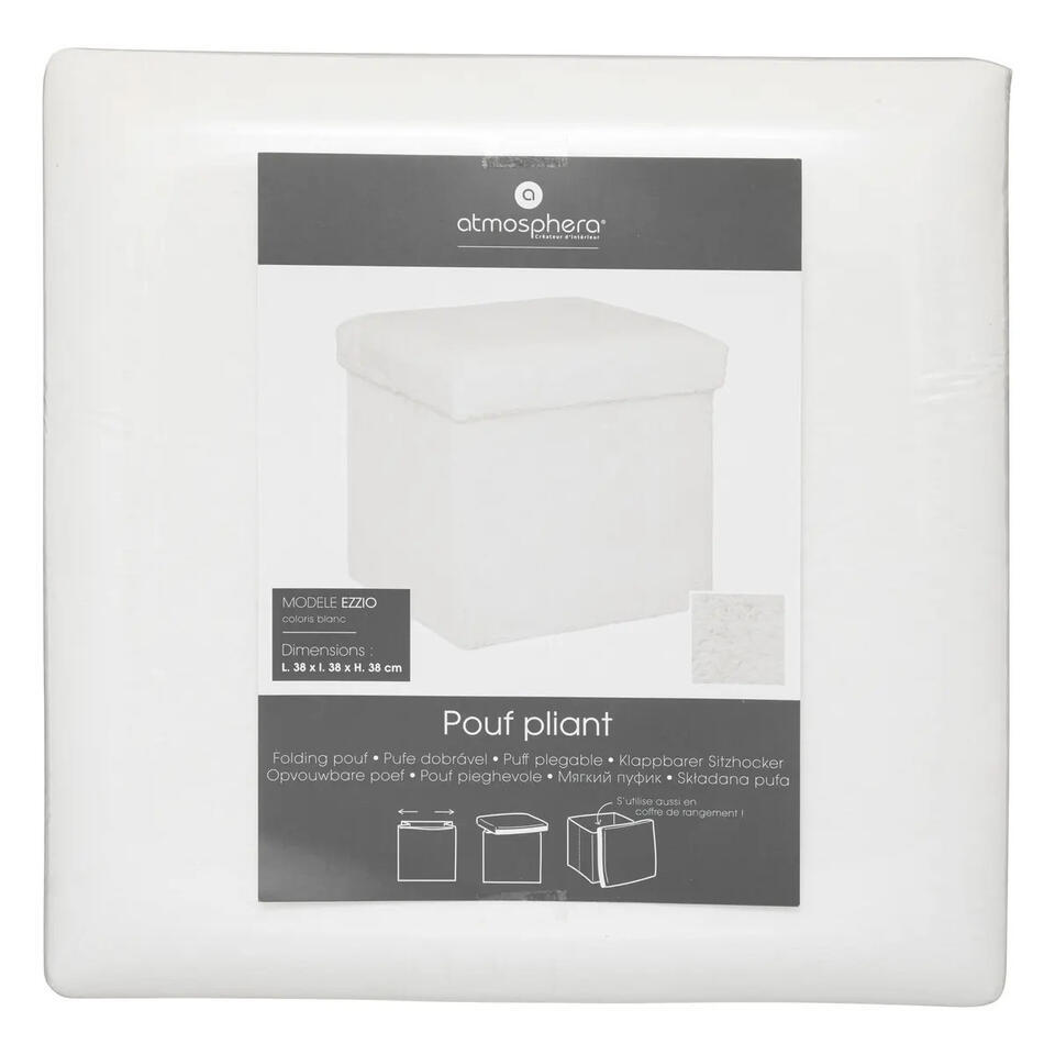 Atmosphera Poef/hocker - opbergbox - wit - PU/MDF - 38 x 38 cm