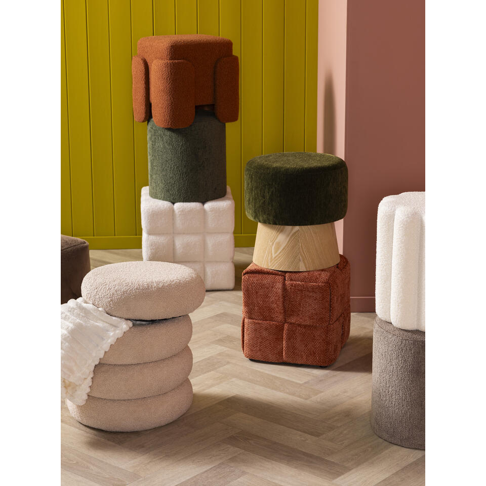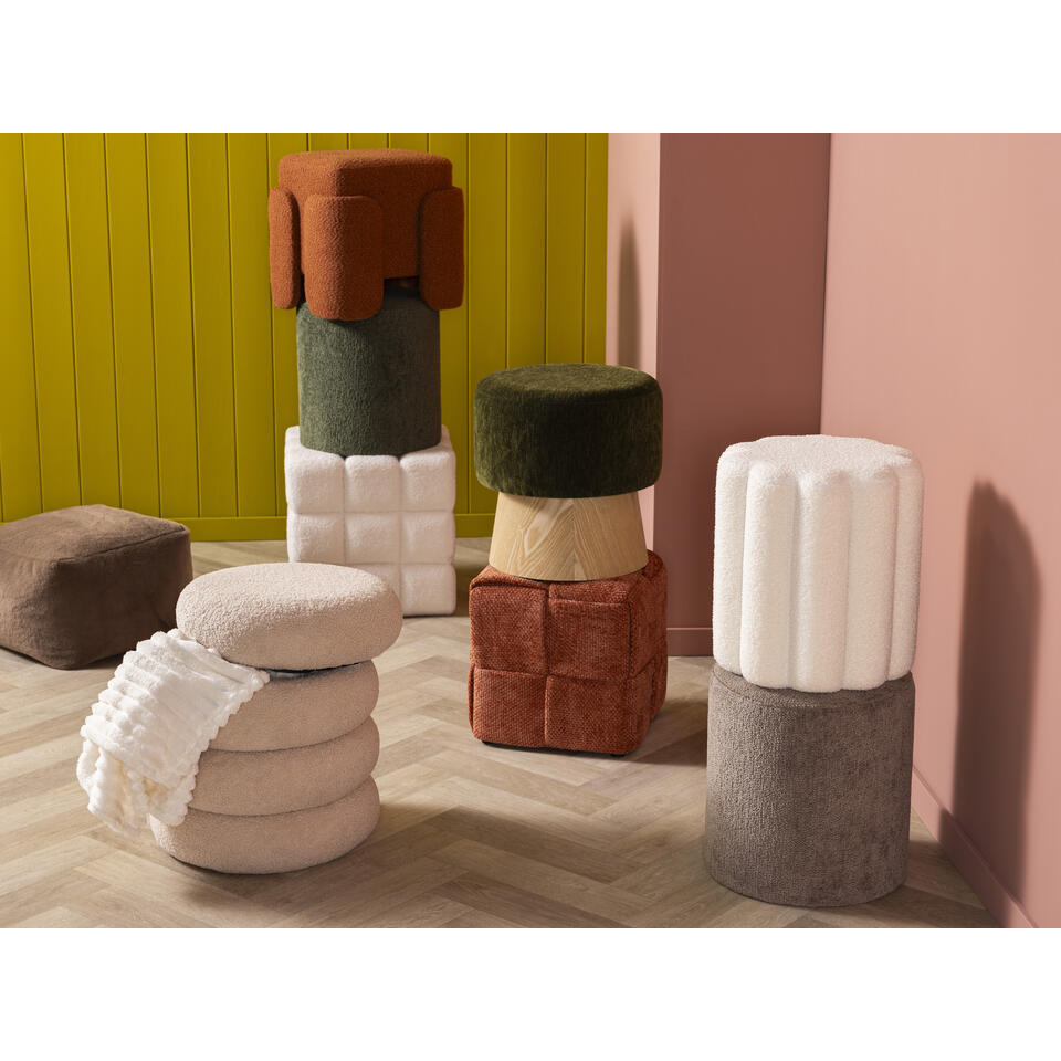 Poef Almeria is groen van kleur en heeft een afmeting van 40xØ40 cm. Met een poefje heb je altijd een zitplek achter de hand, maar je kunt dit leuke poefje natuurlijk ook gebruiken als bijzettafeltje of voetenbankje. Deze poef komt dus altijd van pas!