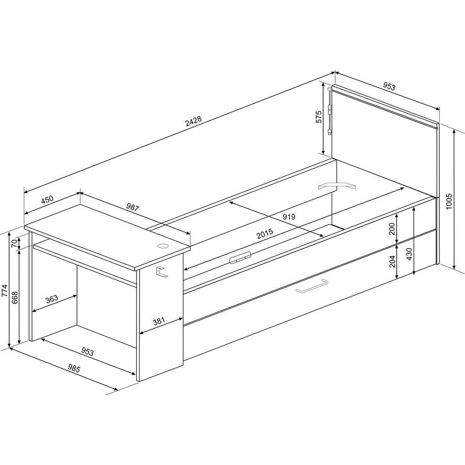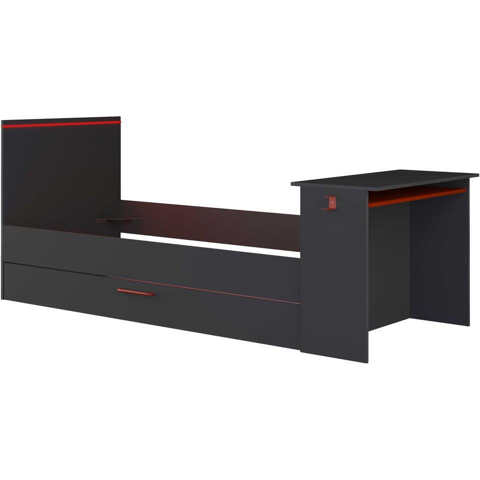 Bed Bzone 90x200 cm met bedlade, bureau en ledverlichting - antraciet