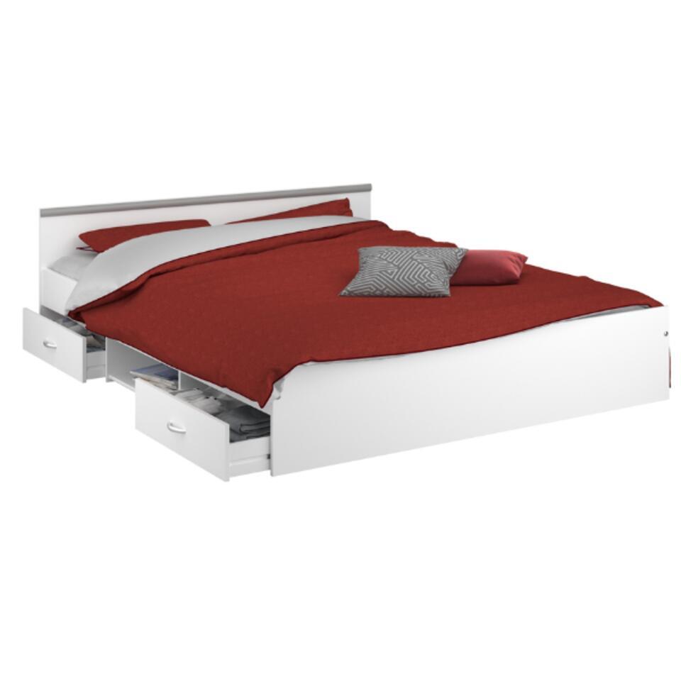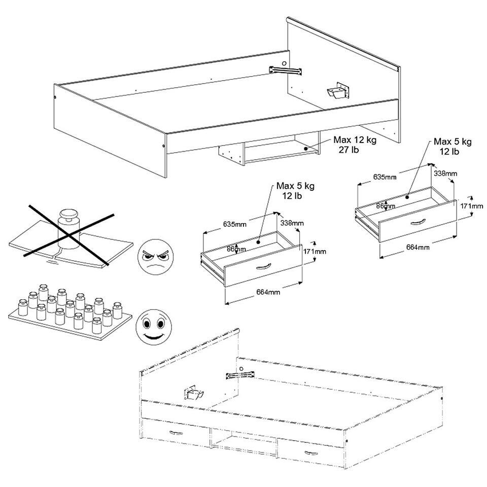 Stijlvol tweepersoonsbed Alma uit spaanplaat met mooie detailafwerking aan het hoofdbord. Onder het bed vind je 2 opberglades, die zowel links als rechts gemonteerd kunnen worden. Dit bed is geschikt voor een matras van 160 x 200 cm. Daarnaast is dit bed geschikt voor een lattenbodem van 160 x 200 cm of 2 lattenbodems van 80 x 200 cm. Kies je voor 2 aparte lattenbodems, dan heb je nog een set van 2 koppelpoten nodig ter ondersteuning van de lattenbodem. Ook die kan je op onze site aankopen.