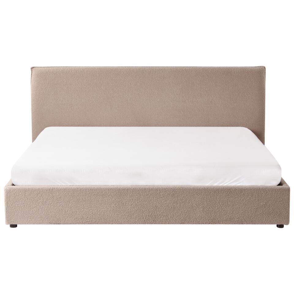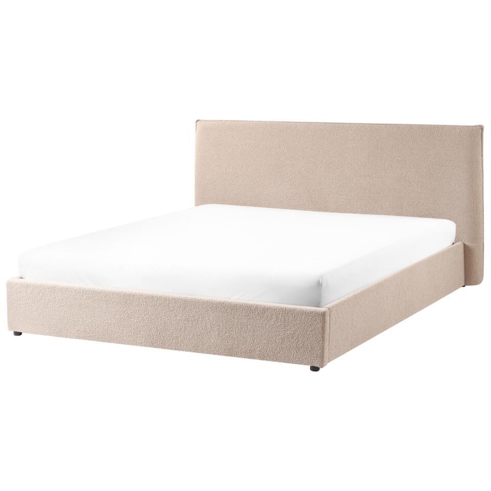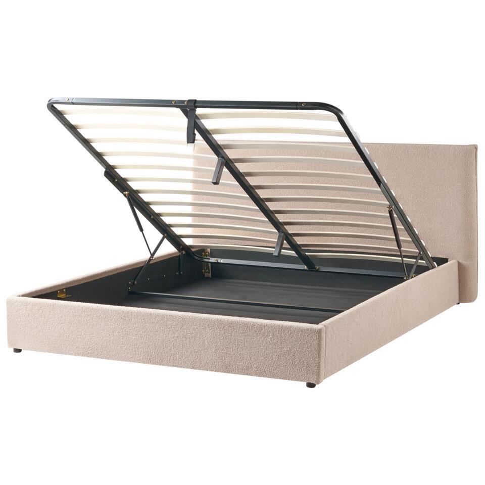 Bed met hefbaar frame in boucle bekleding. Dit klassieke opbergbed is ontworpen om je slaapervaring te verbeteren en tijdloze charme toe te voegen aan je slaapkamer. Het is bekleed met zacht taupe bouclé en past prachtig bij verschillende accessoires en kleurrijk linnengoed. De gasveer lattenbodem biedt gemakkelijk toegang tot een royaal opbergvak - perfect om extra beddengoed netjes op te bergen.