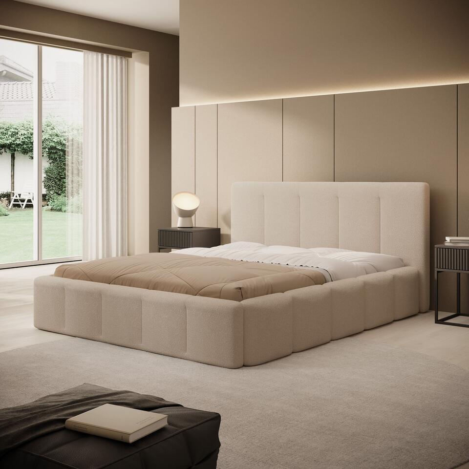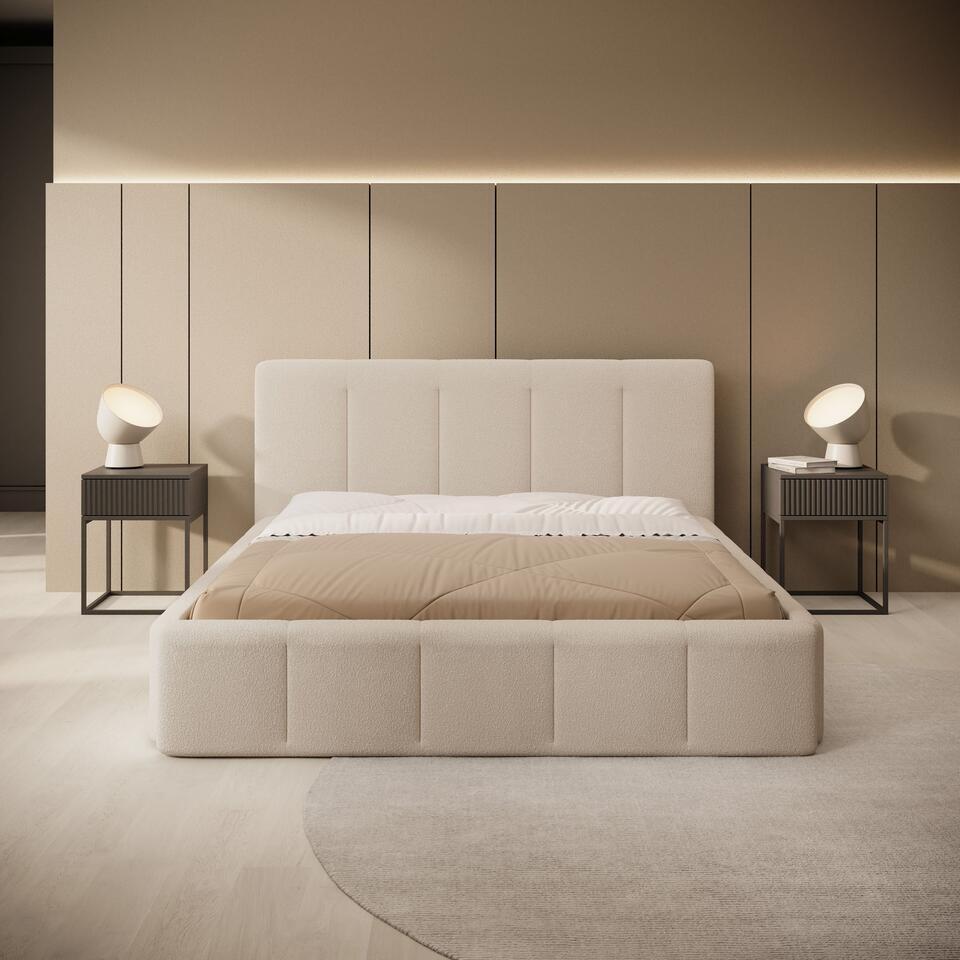 Meubella - Tweepersoonsbed Excalibur - Beige teddystof - 160x200 cm