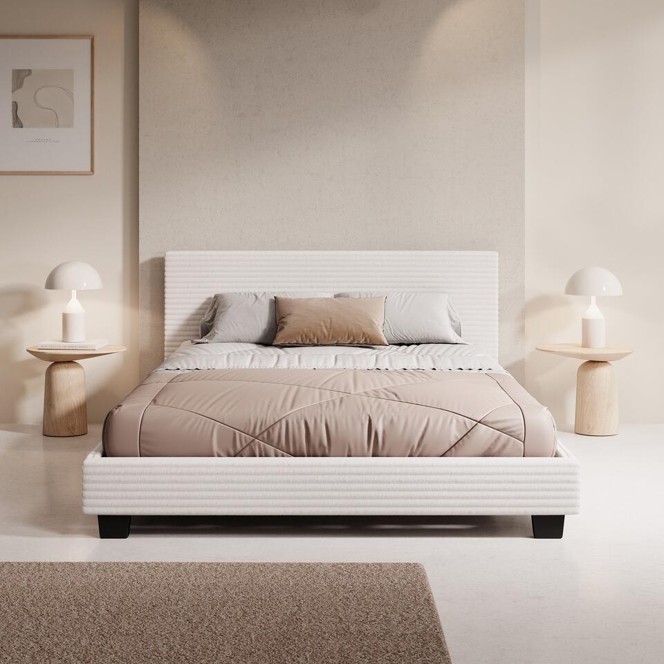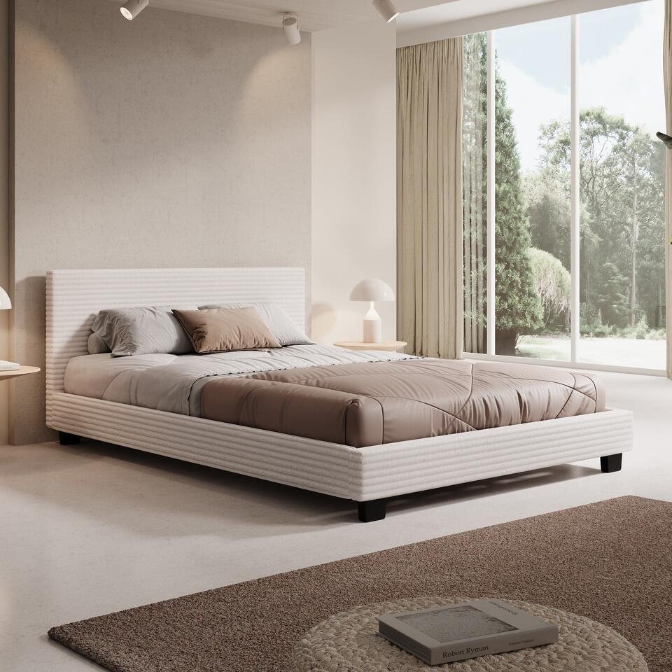 Meubella - Tweepersoonsbed George - Beige ribstof - 140x200 cm
