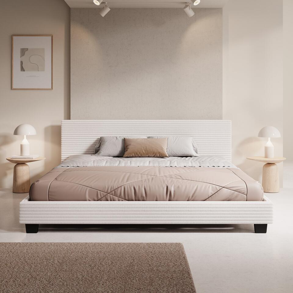 Meubella - Tweepersoonsbed George - Beige ribstof - 180x200 cm