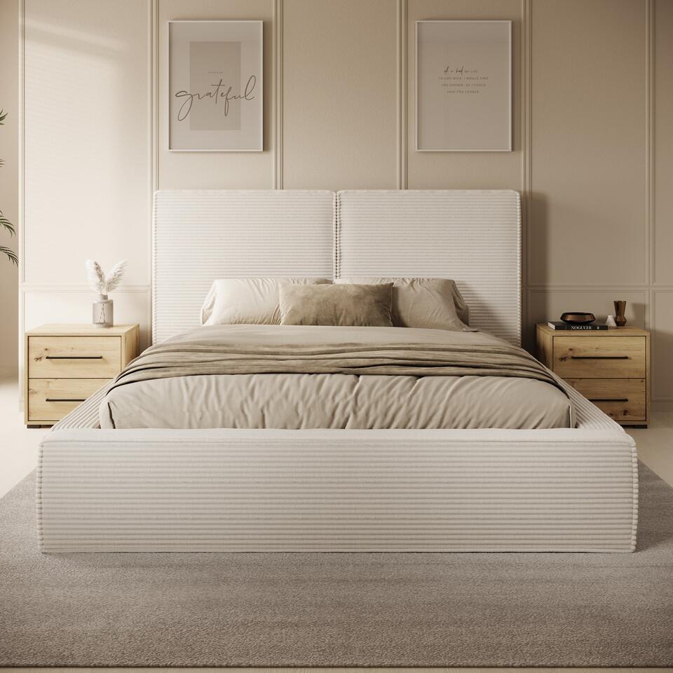 Meubella - Tweepersoonsbed Jarviz - Beige ribstof - 160x200 cm