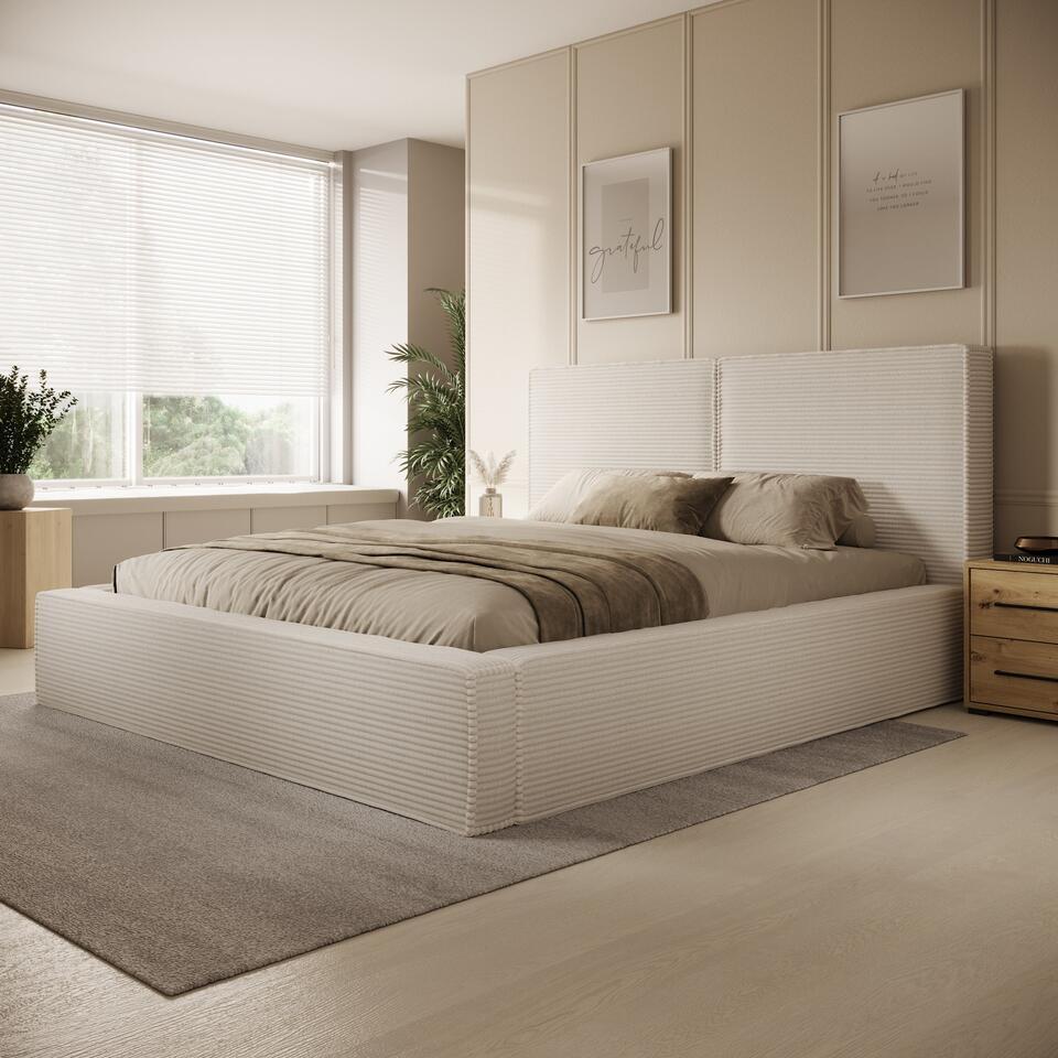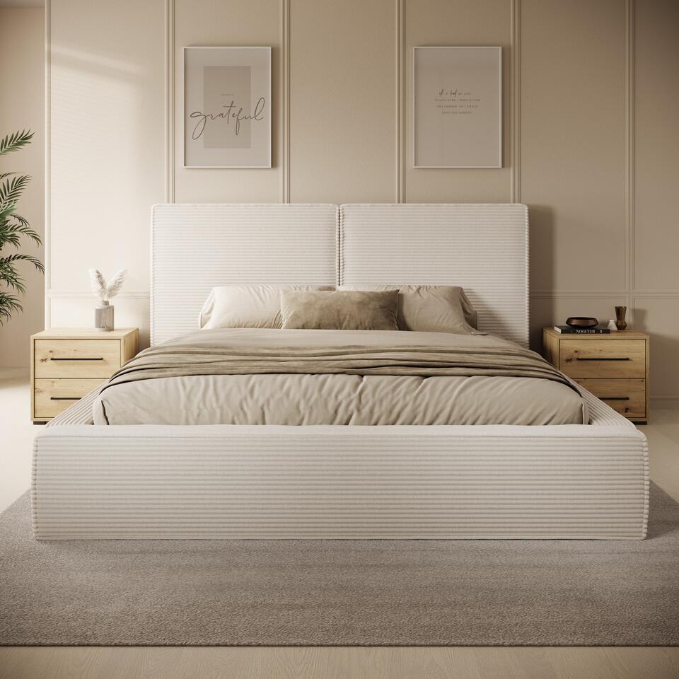 Meubella - Tweepersoonsbed Jarviz - Beige ribstof - 180x200 cm