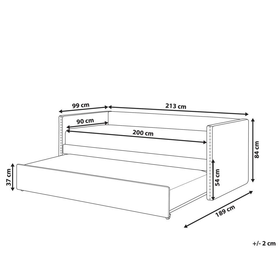 Belangrijkste eigenschappen: Met een gemakkelijk tevoorschijn te halen tweede bed, Zeer comfortabel, Stijlvolle klinknageldecoratie aan de rand, Robuust frame, Hoogwaardig materiaal