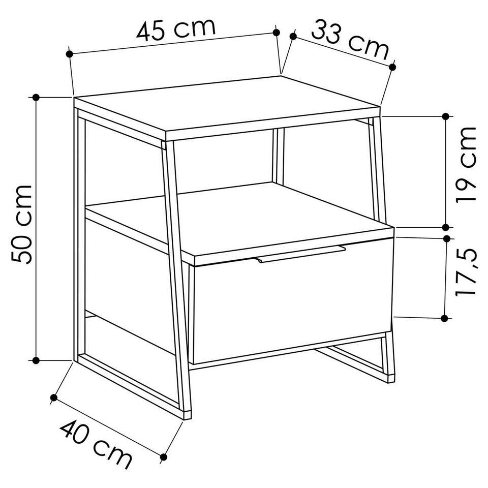 Emob Woody Fashion Nachtkastje - 100% Melamine Gecoat En Metalen Frame