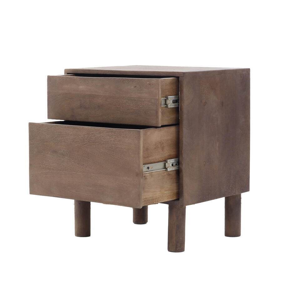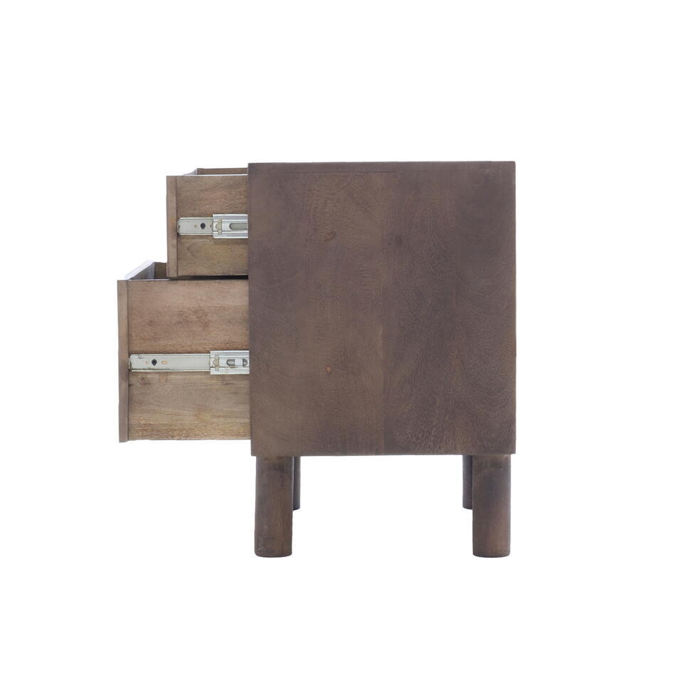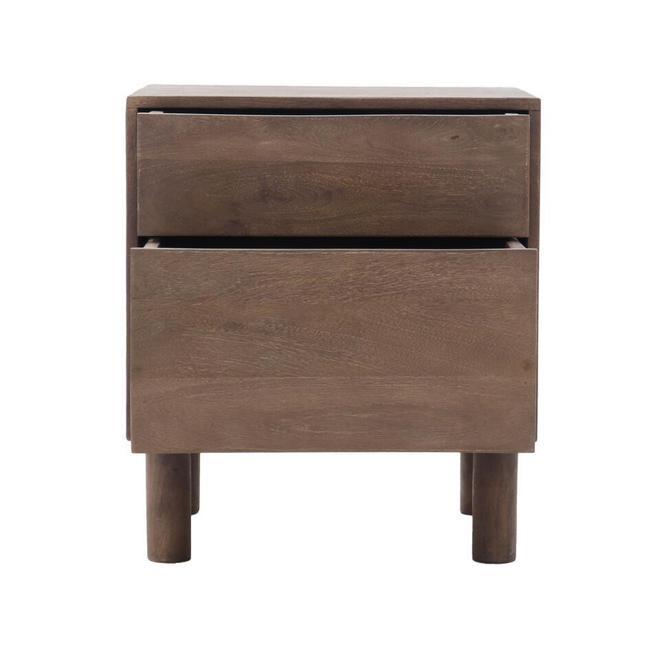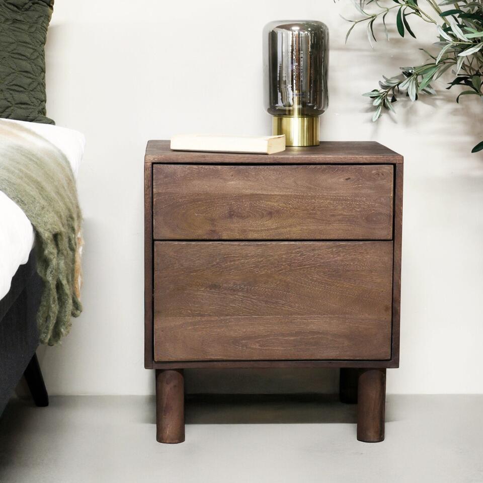 Nachtkastje Bruin Mangohout - 50x38x57cm - 2 Lades - Liana