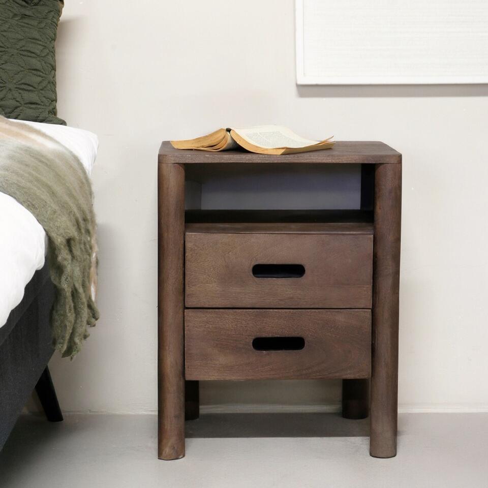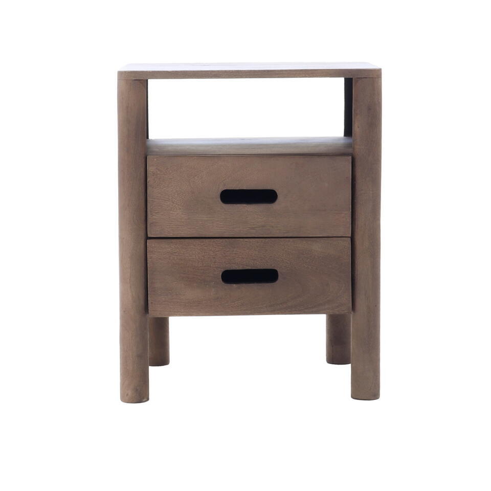 Nachtkastje Naturel Mangohout - 45x38x57cm - 2 Lades - Doria