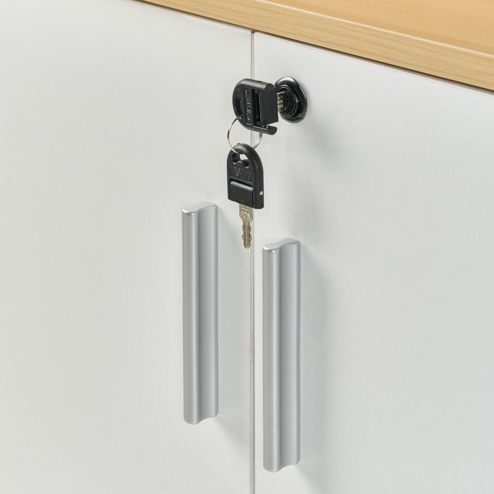 Belangrijkste eigenschappen: In hoogte verstelbare planken, Tijdloos design, Stabiele en duurzame constructie, Met sleutel afsluitbaar voor veilig bewaren, Ideaal voor alle woon- en werkplekken