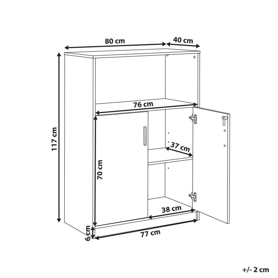 Stijlvolle archiefkast met open plank. Met deze kantoorkast ontgrendel je de poort naar georganiseerde pracht. Het meubel heeft een 2-deurs opbergvak met sleutelvergrendeling en twee legplanken, zodat je al je documenten veilig en geordend kunt opbergen. De extra open plank is perfect voor het opbergen van spulletjes en decoraties. Maak je werkruimte mooier - waar chaos zijn gelijke vindt en innovatie groeit.