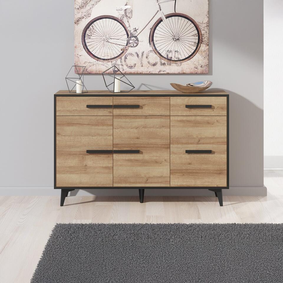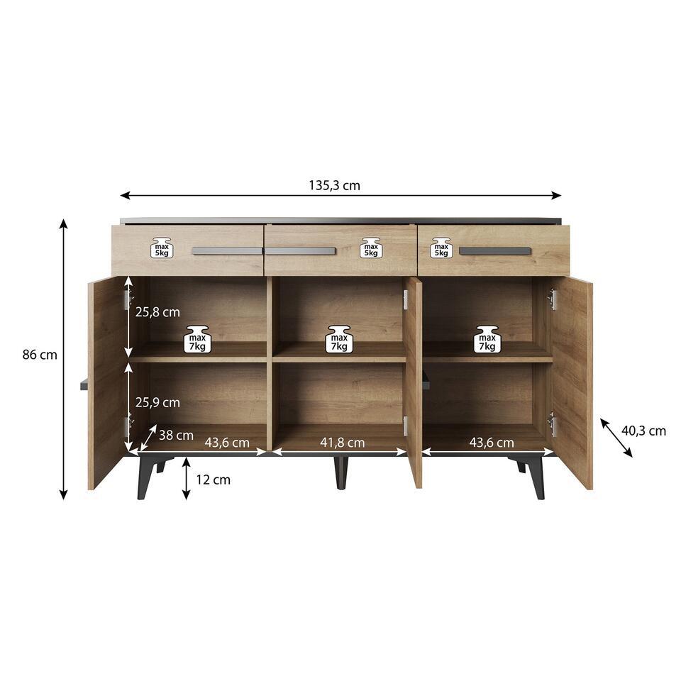 Meubella - Dressoir Frey - Licht eiken - Zwart - 135 cm