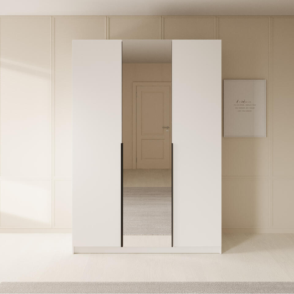 Meubella - Kledingkast Sabre - Wit - 150 cm - Met spiegel