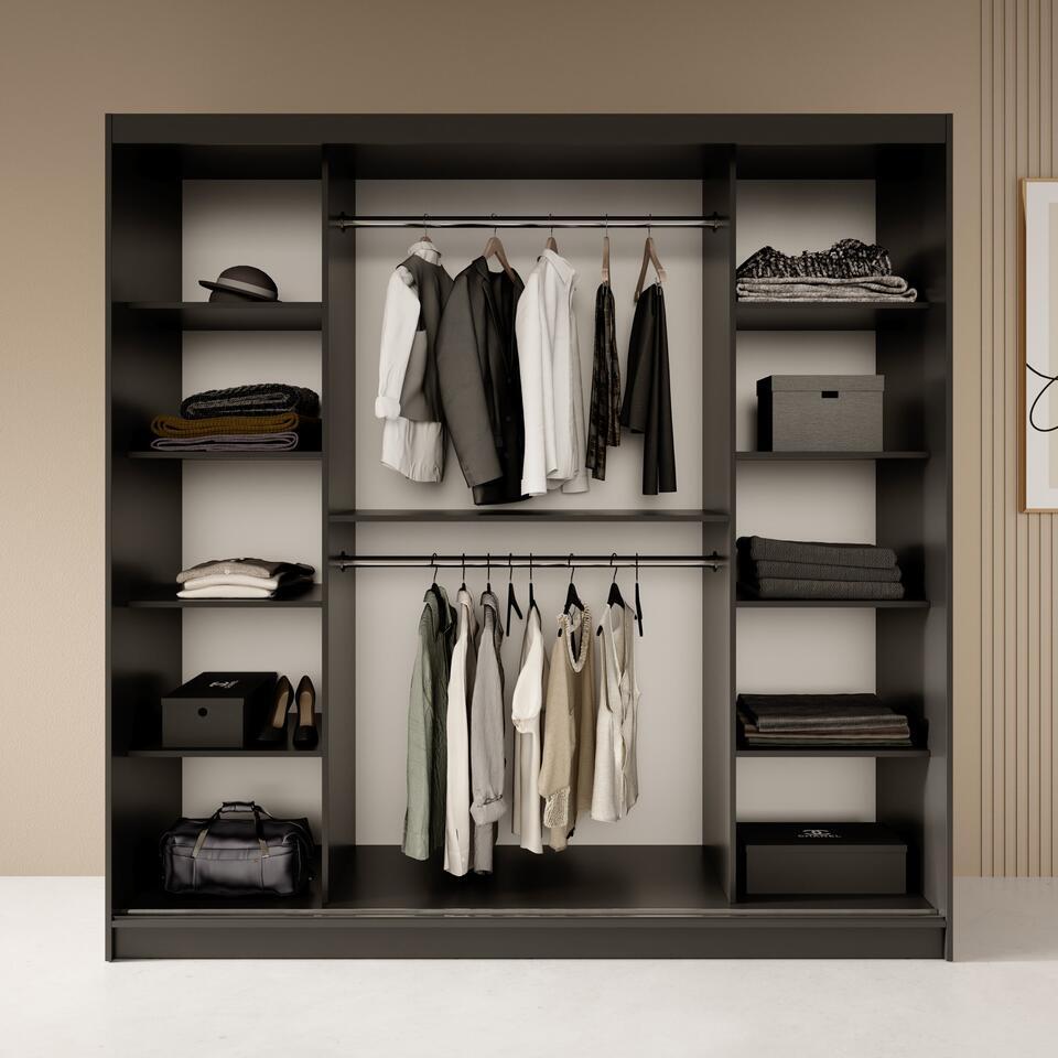 Meubella - Kledingkast Fessaro - Zwart - 200 cm