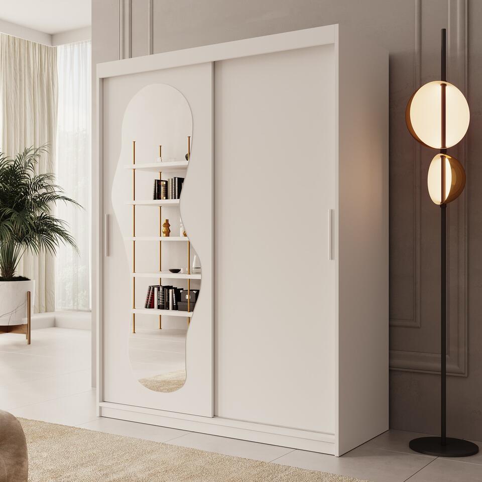 Meubella - Kledingkast Ulysses - Wit - 150 cm - Met spiegel