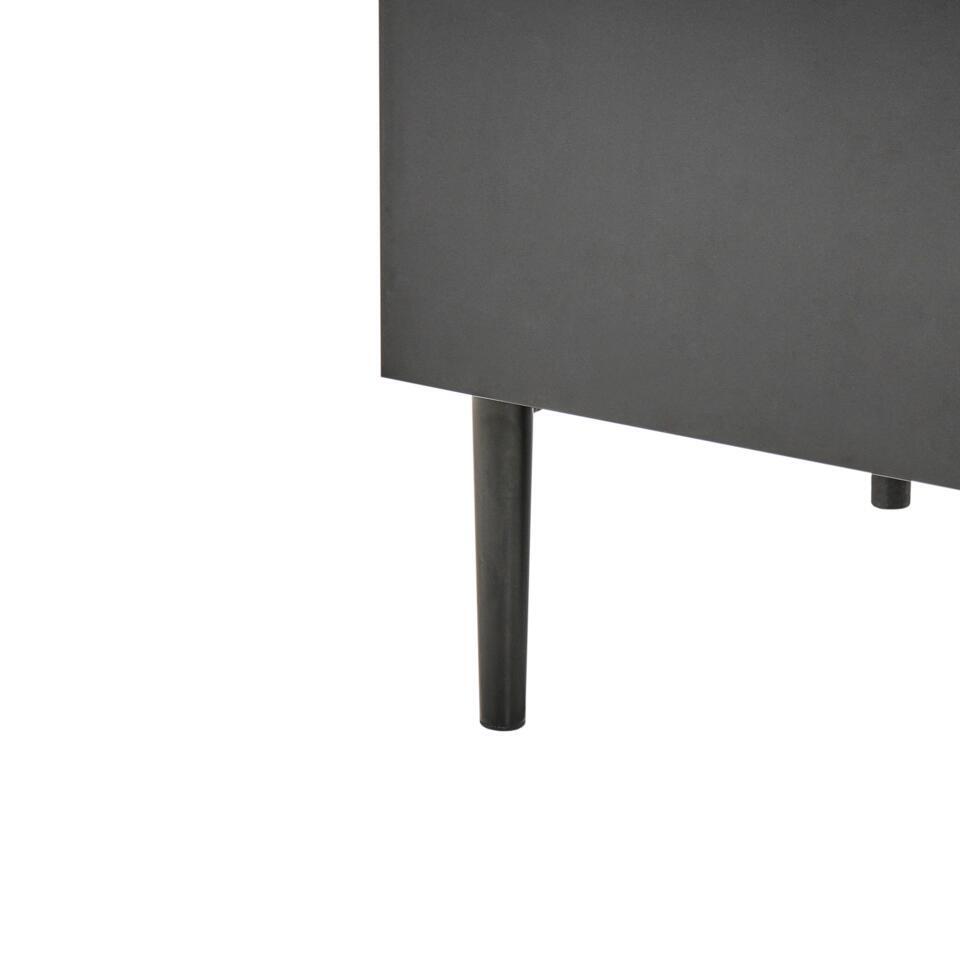 Modern 4-lade kast met geribbelde voorkant. Deze moderne ladekast is een perfecte opbergoplossing voor elke woon- of slaapkamer. Met zijn 4 ruime lades is hij ideaal om je ruimte georganiseerd te houden. Hij is gemaakt van lichtgewicht MDF met slanke hoge metalen poten en is duurzaam en functioneel. De kast voegt elegantie toe aan elk interieur dankzij de klassieke zwarte kleur en de stijlvolle essenhouten fineer geribbelde voorkant.