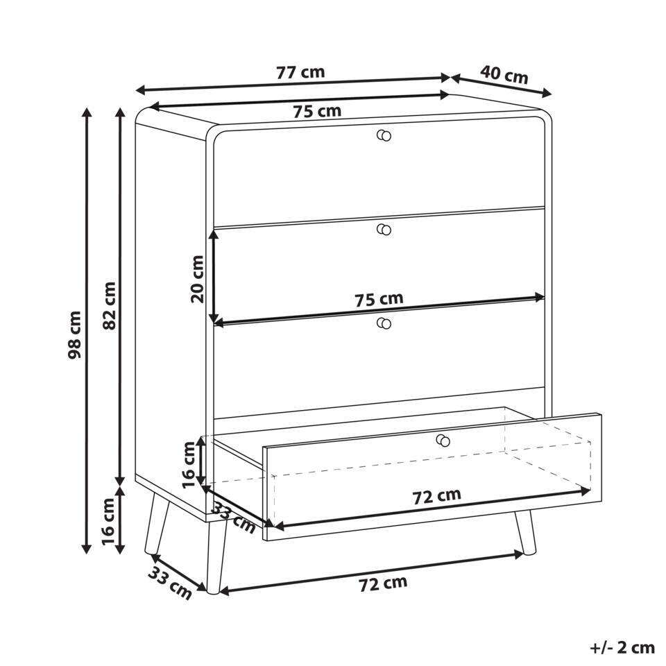 Belangrijkste eigenschappen: Handige en royale lades, De natuurlijke houtnerven en knoesten maken elk stuk uniek, Hoogwaardig materiaal, Praktische opslagruimte, Beschermdoppen voor oppervlaktebescherming