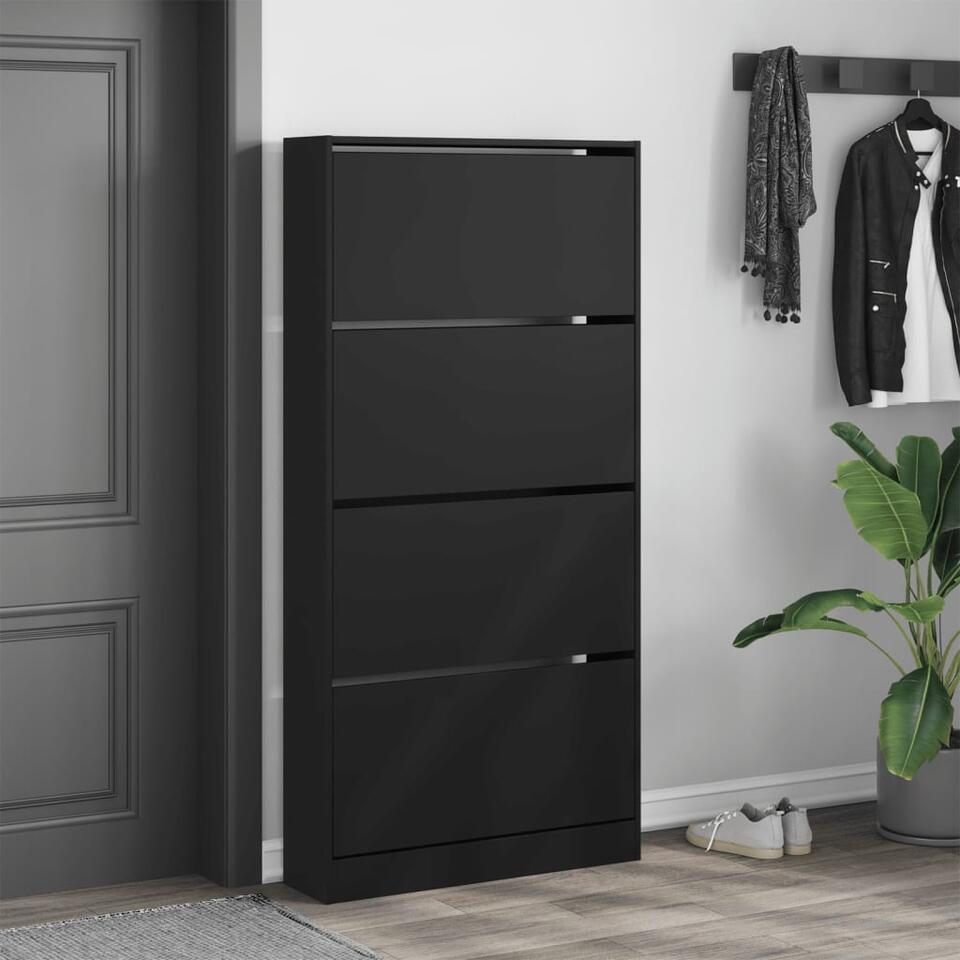 vidaXL - Zwart Schoenenkast met 4 vakken - Bewerkt hout - 80x21x163.5 cm