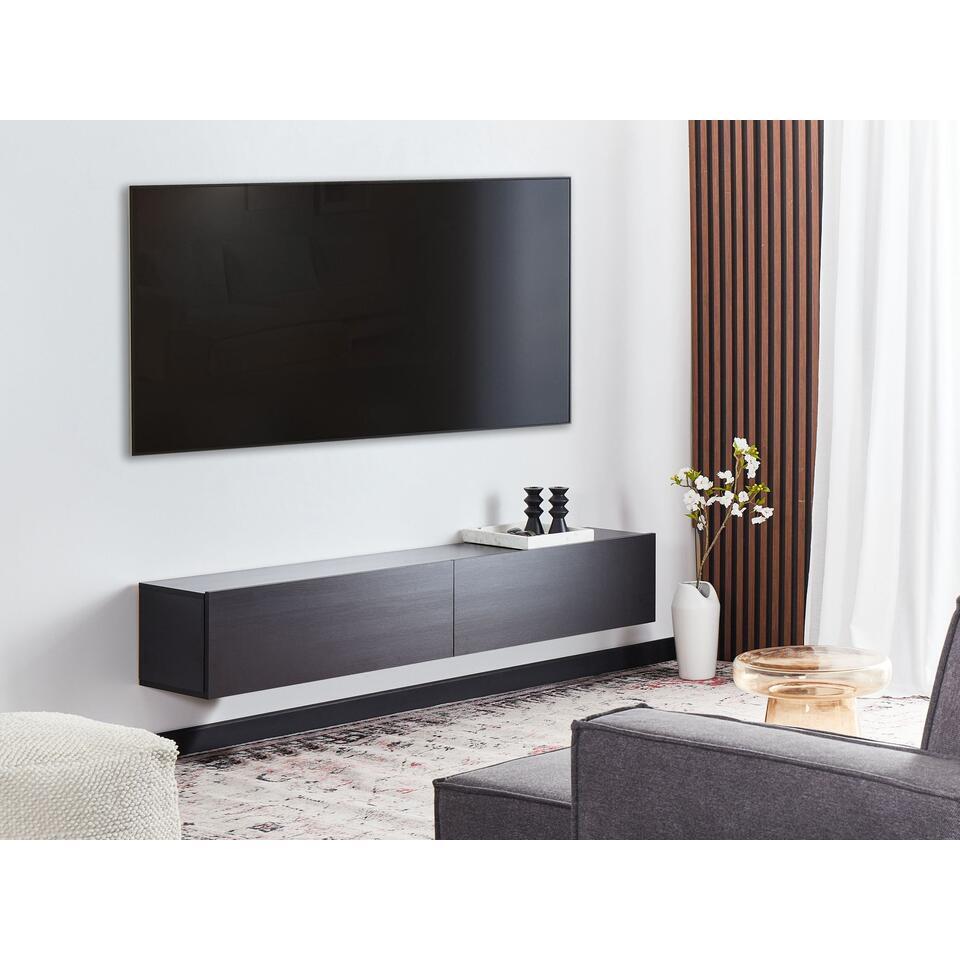 GLADSTONE - Wandgemonteerd TV-meubel - Zwart - 180 cm - Vezelplaat