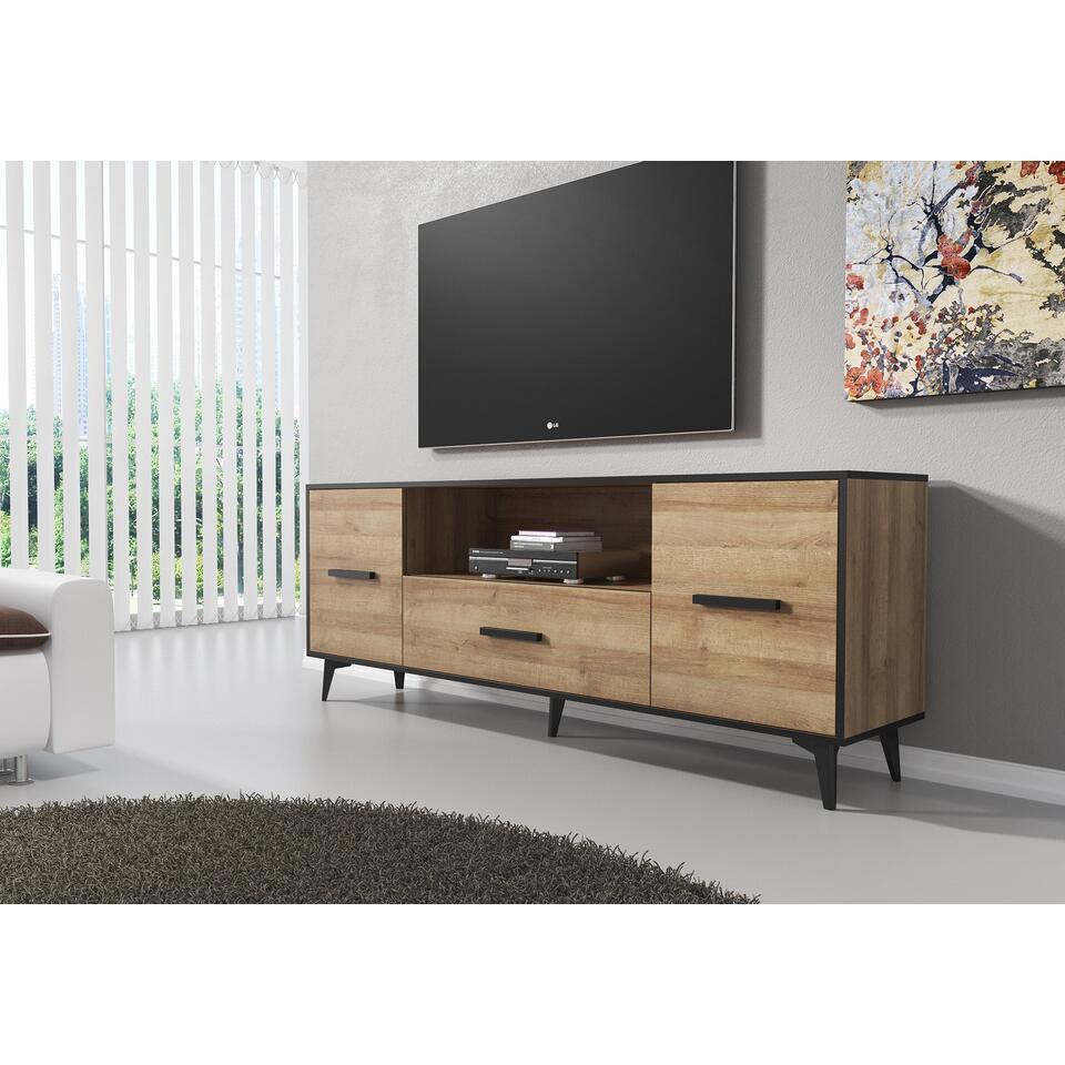 Meubella - TV-Meubel Frey - Licht eiken - Zwart - 179 cm
