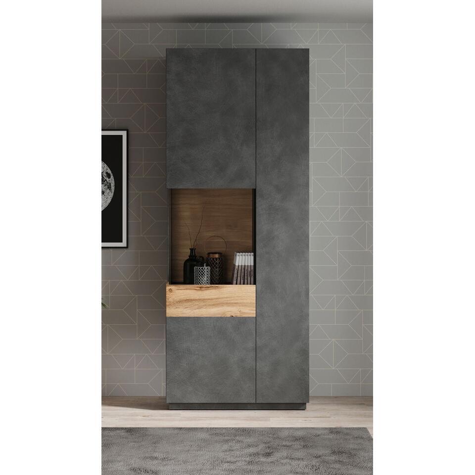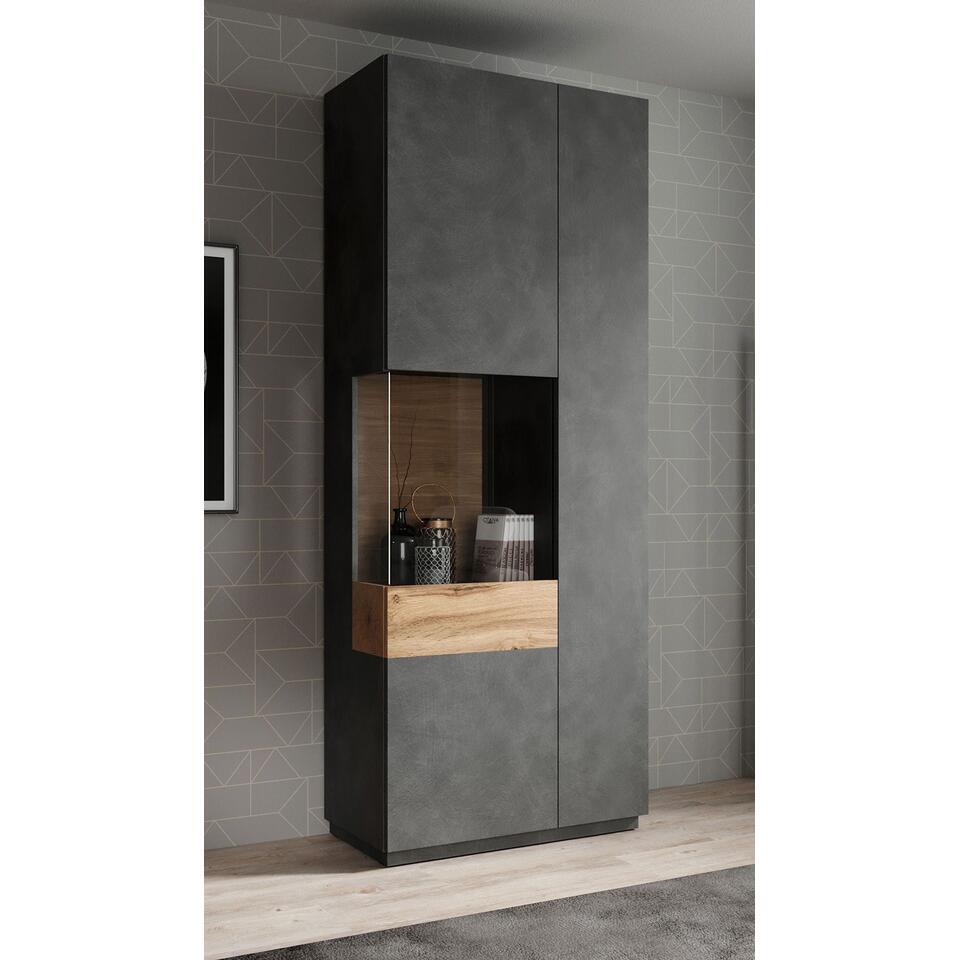Meubella - Vitrinekast Sublime - Grijs - Eiken - 80 cm - Hoog