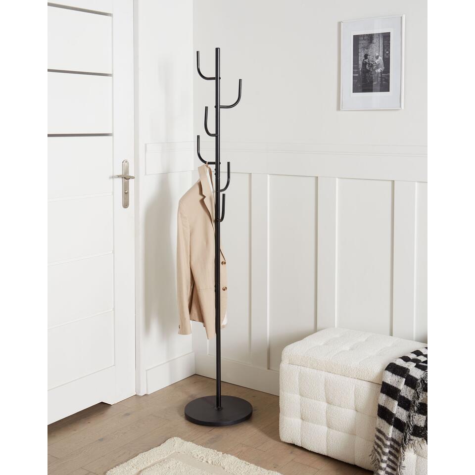 Decoratieve kapstok voor binnen. Deze minimalistische metalen kapstok is de perfecte oplossing voor wie op zoek is naar eenvoud en functionaliteit. Met zijn zes haken biedt hij voldoende ruimte voor het ophangen van jassen, hoeden en tassen zonder al te veel ruimte in beslag te nemen. Het strakke ontwerp zorgt ervoor dat hij naadloos past in elke gang of entree en zorgt voor een opgeruimde en georganiseerde look. Deze kapstok is gemaakt van duurzame materialen en is een praktische aanwinst voor elk huis. Geniet van een rommelvrije ruimte met behoud van een stijlvolle esthetiek met dit essentiële stuk.