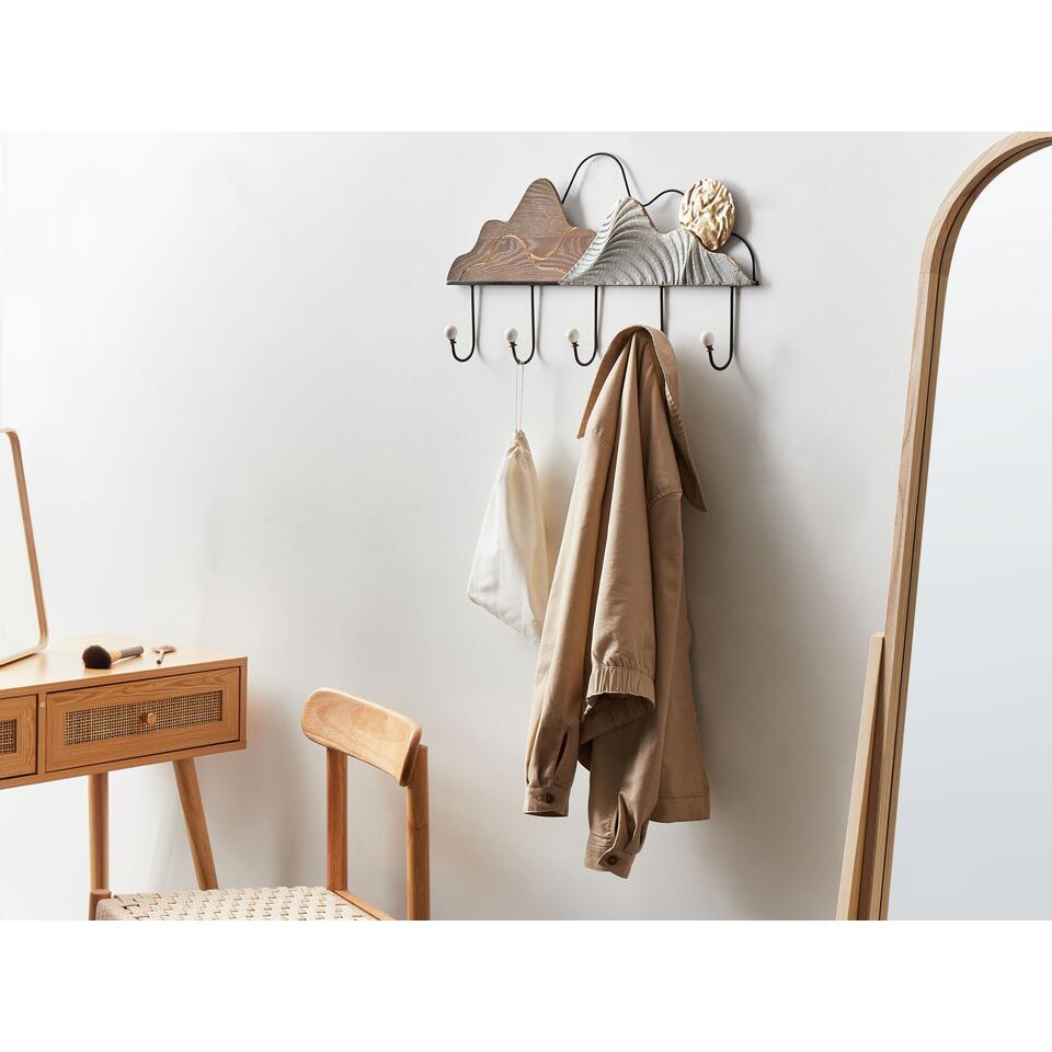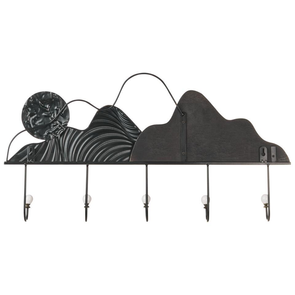 Decoratieve kapstok voor in de gang. Deze decoratieve wandkapstok combineert functionaliteit met artistieke charme. Hij is gemaakt van duurzaam ijzer en heeft een bergachtig ontwerp met vijf stevige haken, perfect om jassen, tassen of accessoires aan op te hangen. De unieke vorm en minimalistische afwerking maken het een opvallend accent voor elke gang, entree of slaapkamer.