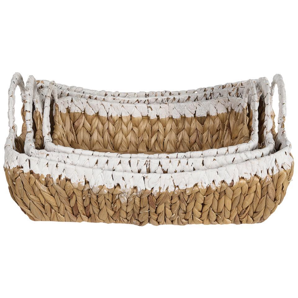 Handgeweven manden set met handvaten. Ontdek deze drie veelzijdige manden, ideaal als stijlvolle opbergoplossing. Deze manden, die geschikt zijn om kleine spullen in op te bergen, verfraaien moeiteloos planken en geven elke kamer een charmante uitstraling. Ze zijn gemaakt van waterhyacint, duurzaam en elegant, en hun praktische ontwerp voegt een prachtig accent toe aan je interieur.