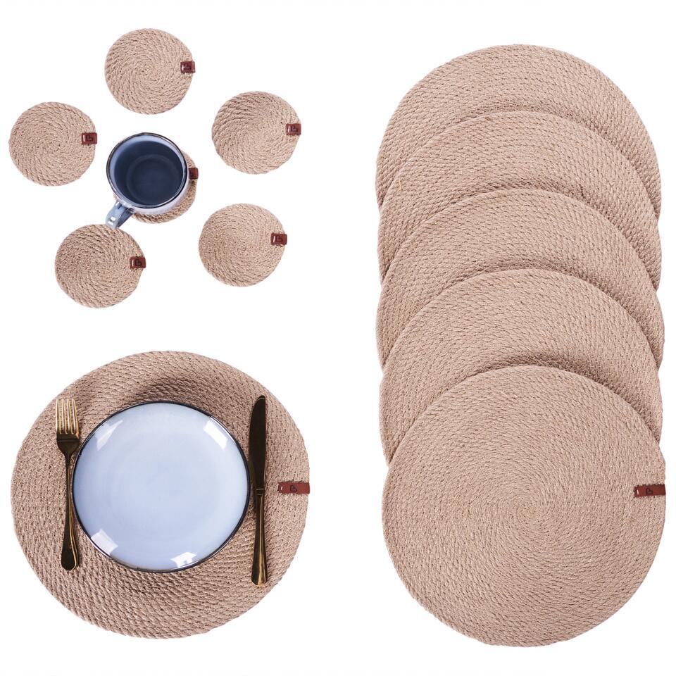 MUNTRIES - Set van 12 placemats en onderzetters - Natuurlijk - Jute