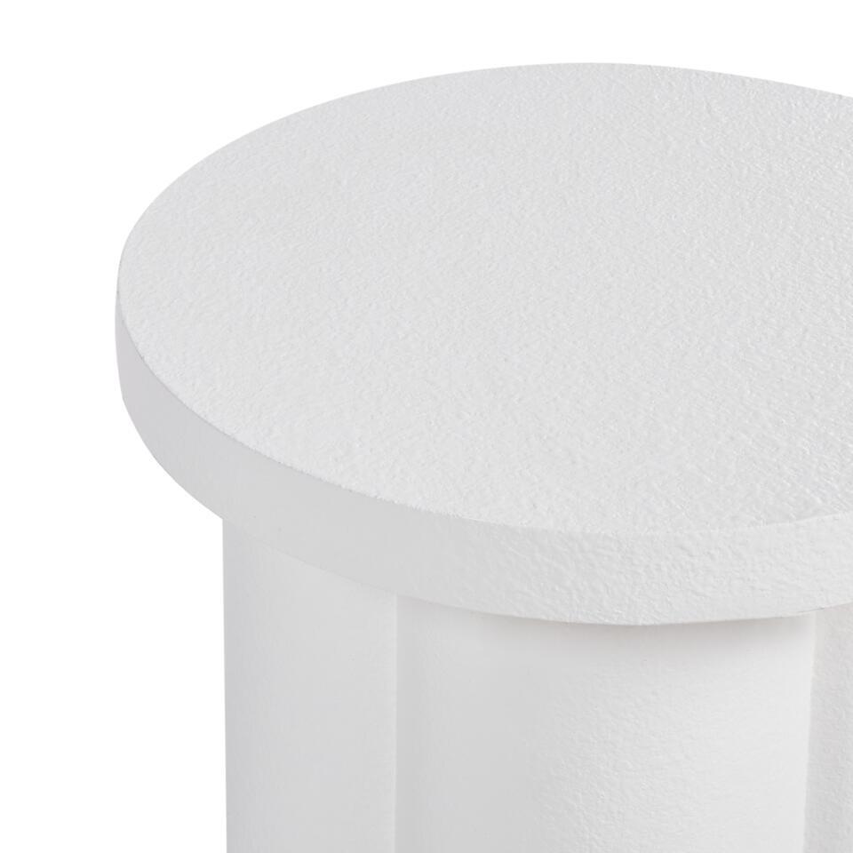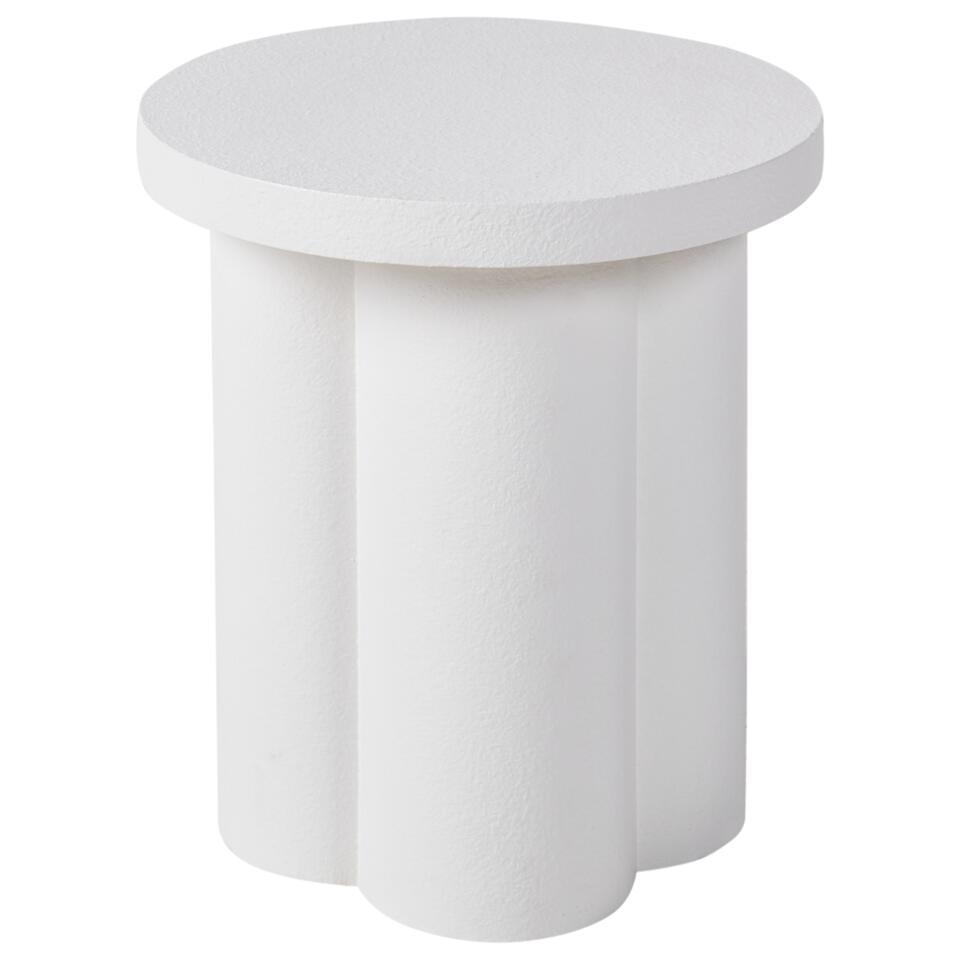 Scandinavische woonkamer bijzettafel. Deze uniek ontworpen bijzettafel heeft een getextureerde afwerking voor een moderne uitstraling. Met zijn organische, asymmetrische vorm en cilindrische poten voegt hij een sculpturaal accent toe aan elke ruimte. Het ruwe oppervlak creëert een reliëf en maakt het tot een pronkstuk met zowel stijl als karakter. Perfect als accenttafel of functioneel decorelement.