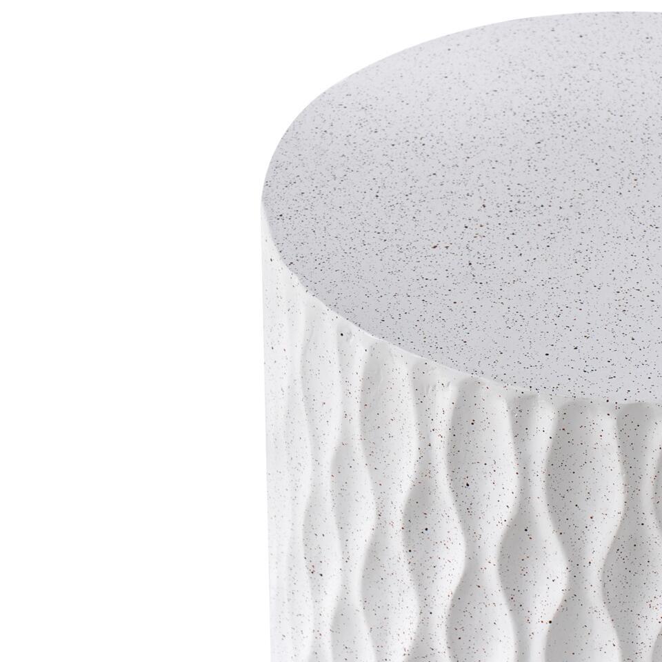 Decoratieve salontafel voor buiten. Deze ronde bijzettafel voegt een decoratief en praktisch tintje toe aan elke tuin of woonkamer. Dit meubel is gemaakt van duurzaam en lichtgewicht MGO, met de hand afgewerkt met een prachtig terrazzo-effect en brengt een mediterrane en moderne sfeer in je interieur. De unieke textuur maakt het tot het perfecte accentstuk dat stijl en functionaliteit gemakkelijk combineert.